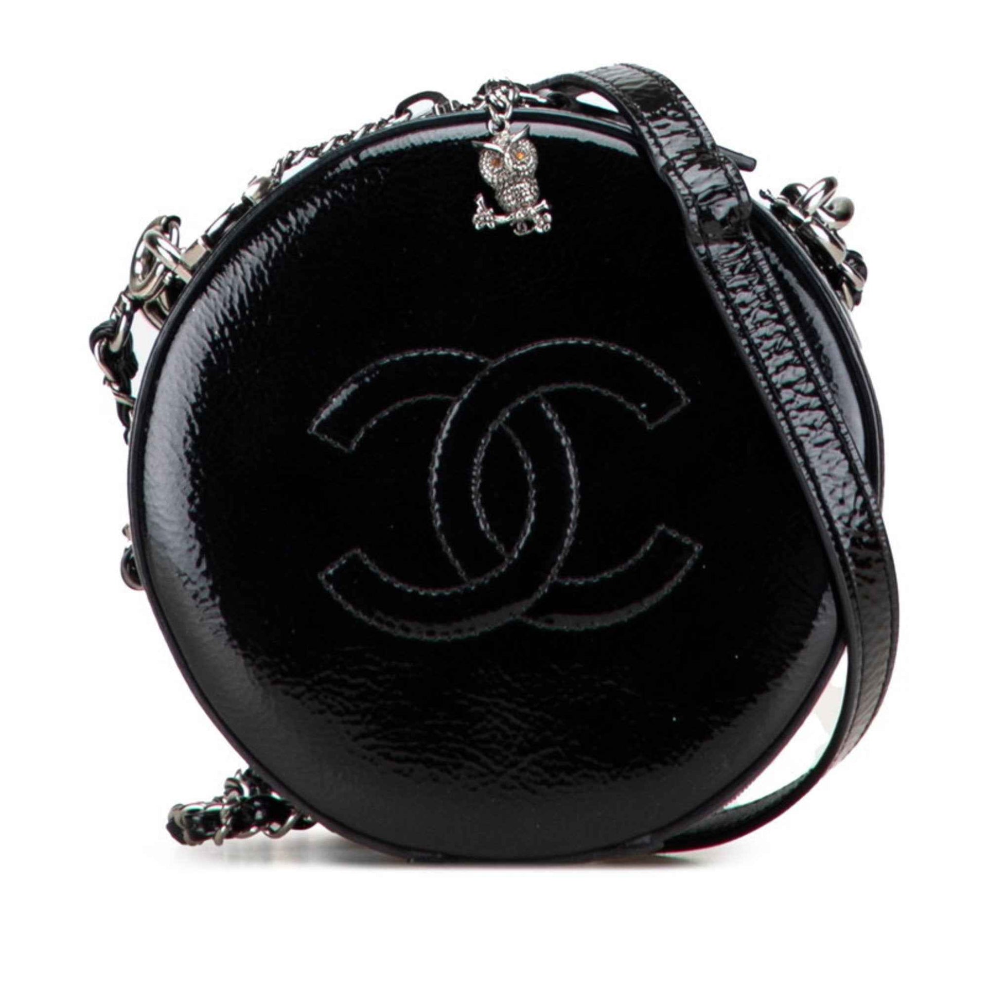 Chanel Coco Mark Chain Shoulder Bag/Handbag, 2-Way, Black Enamel, Women\'s, CHANEL