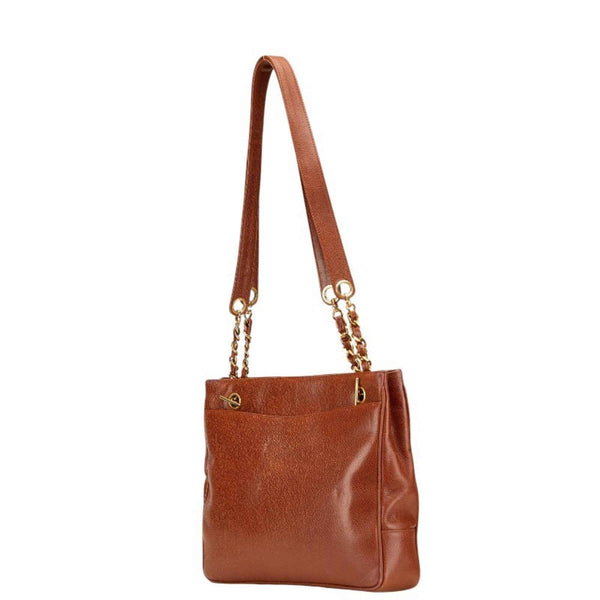 Chanel Coco Mark Chain Tote Bag Shoulder Brown Caviar Skin Women\'s CHANEL