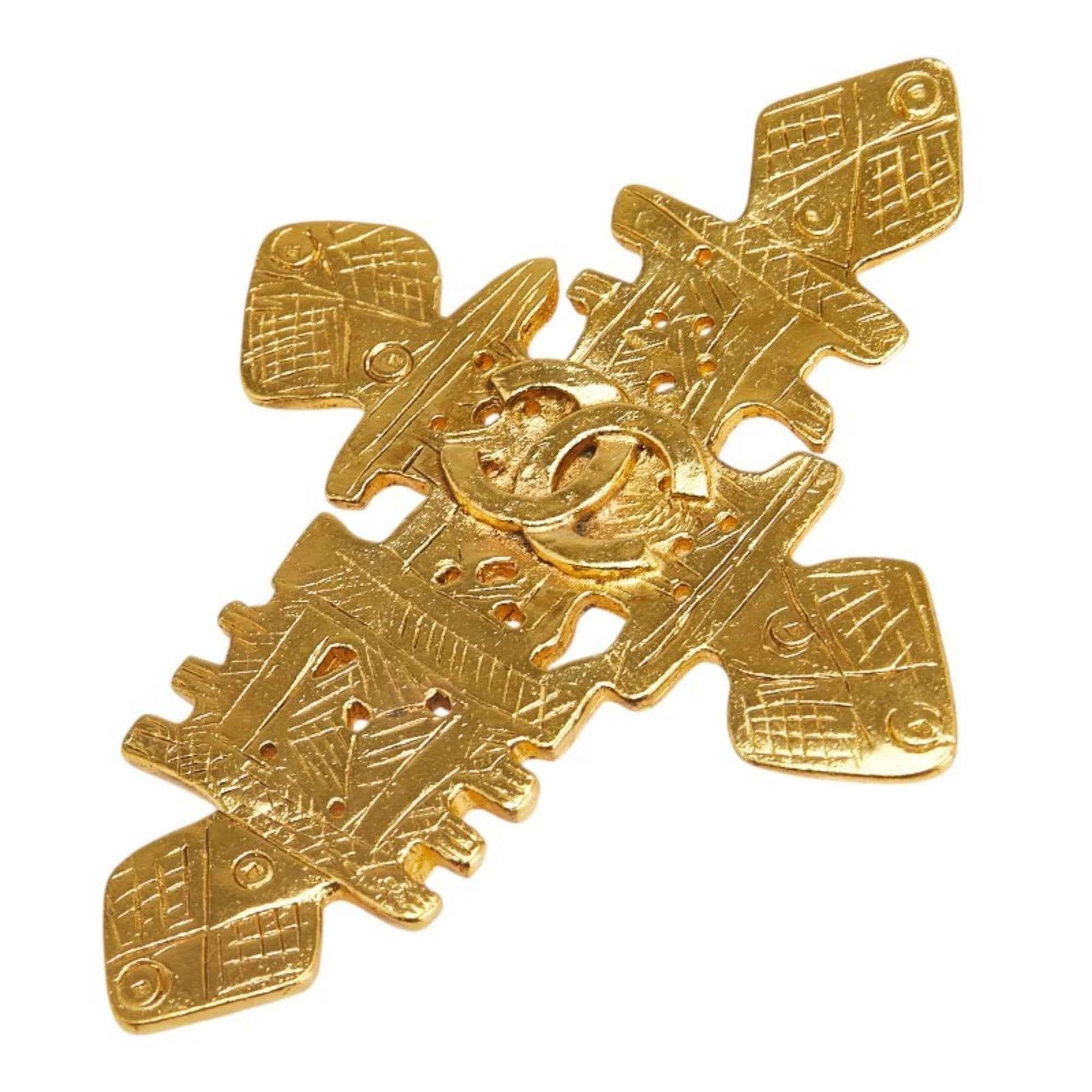 Chanel Coco Mark Cross Brooch, Gold Plated, Women\'s, CHANEL