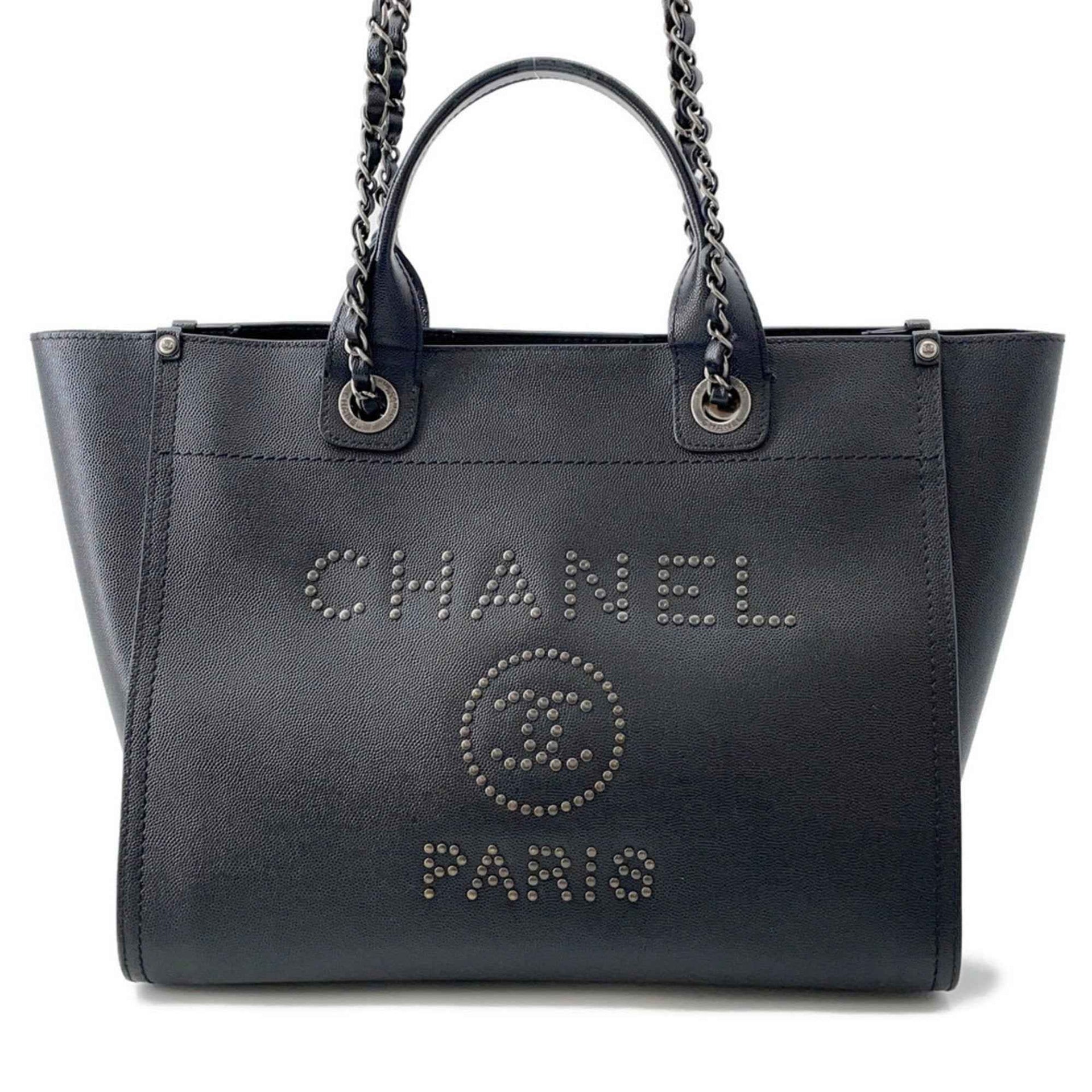 CHANEL Coco Mark Deauville Tote Bag, GM Studded Caviar Leather, A57069, Black