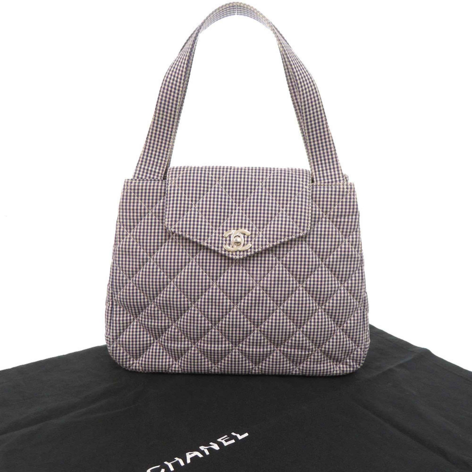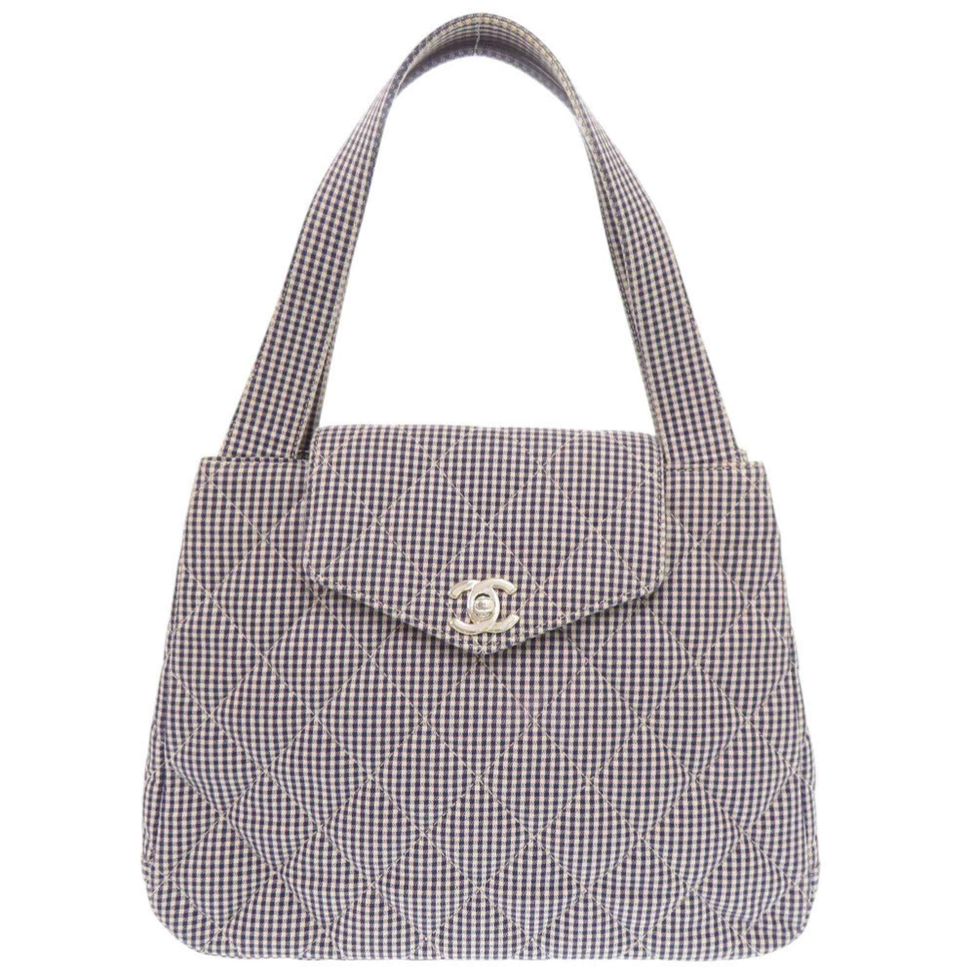 Chanel Coco Mark Gingham Check Canvas Handbag, No. 4, Silver Hardware, Blue, 1398CHANEL