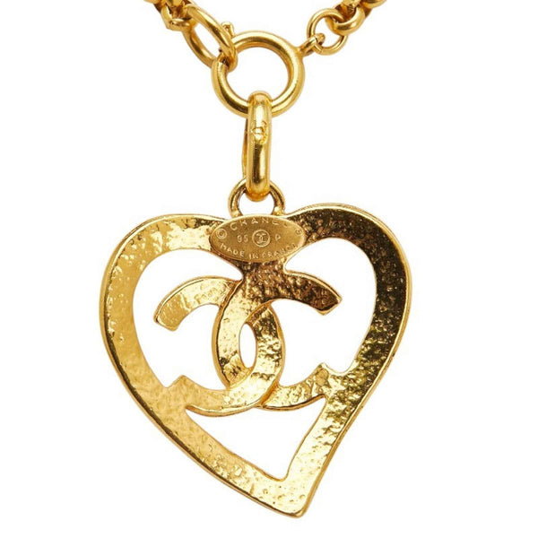 CHANEL Coco Mark Heart Circle Necklace, Gold Plated, Women\'s
