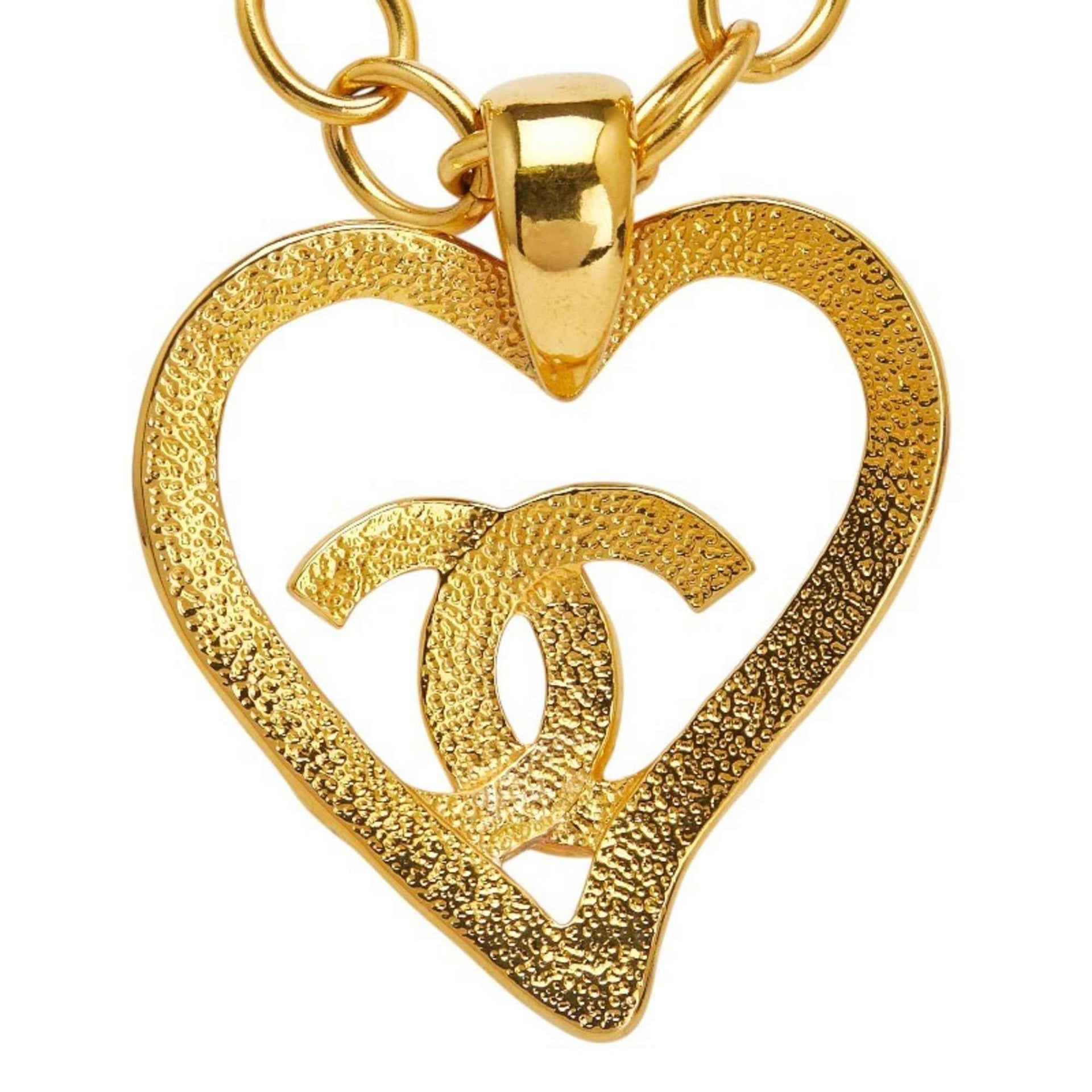 Chanel Coco Mark Heart Motif Chain Necklace, Gold Plated, Women\'s, CHANEL