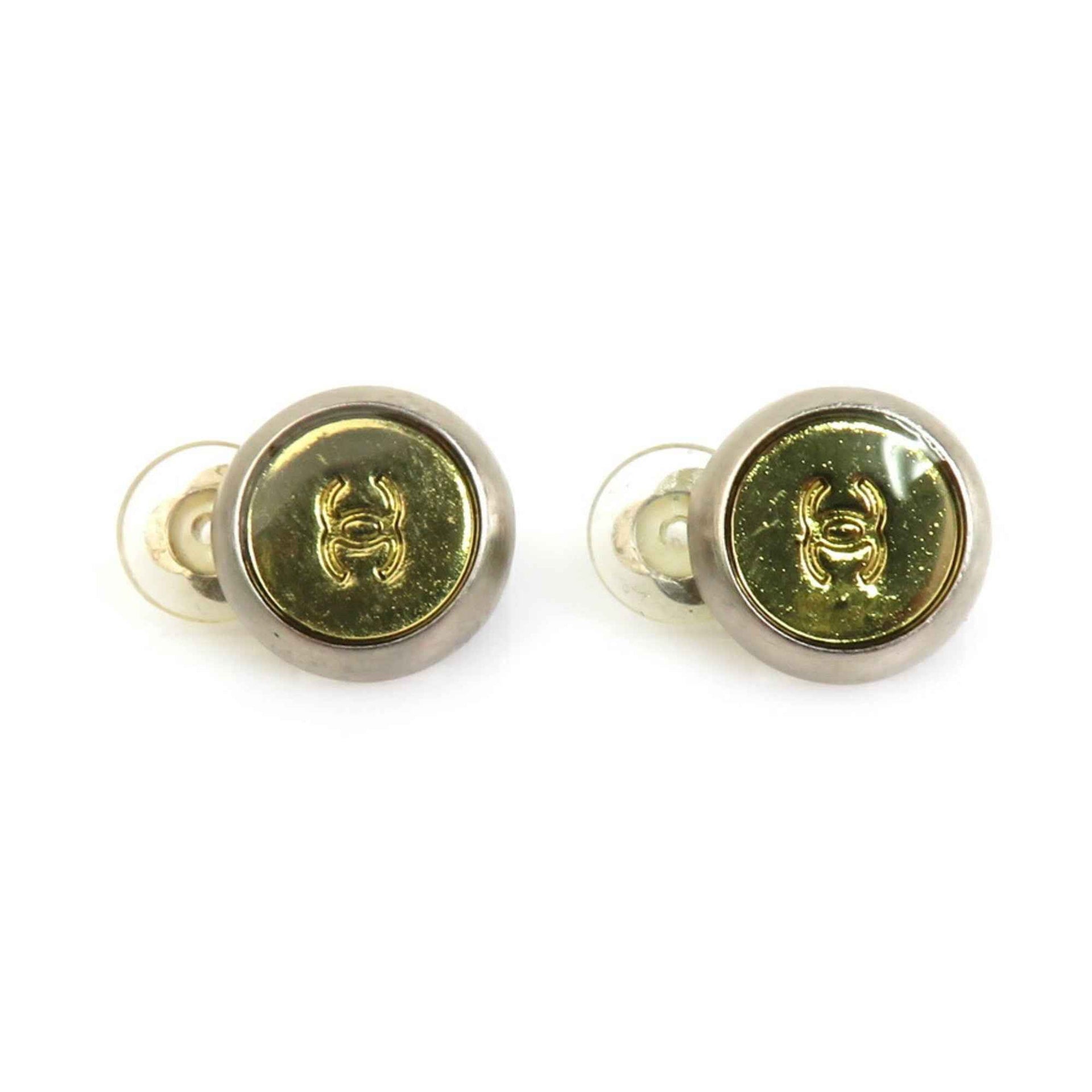 CHANEL Coco Mark Metal Earrings Silver x Gold Women\'s h30278f