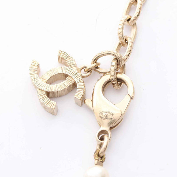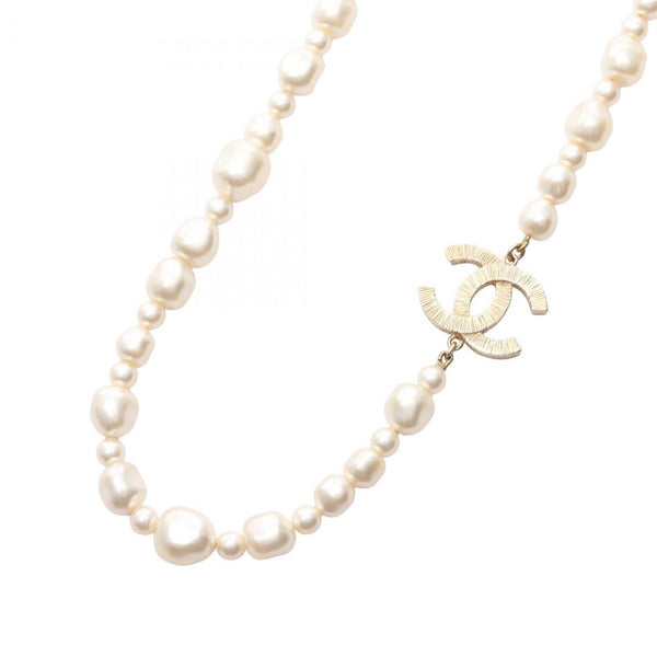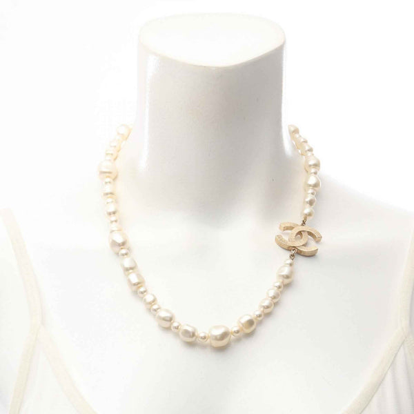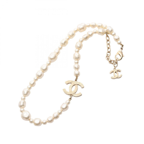 Chanel Coco Mark Necklace, Gold Plated with Faux Pearls, Women\'s, and White