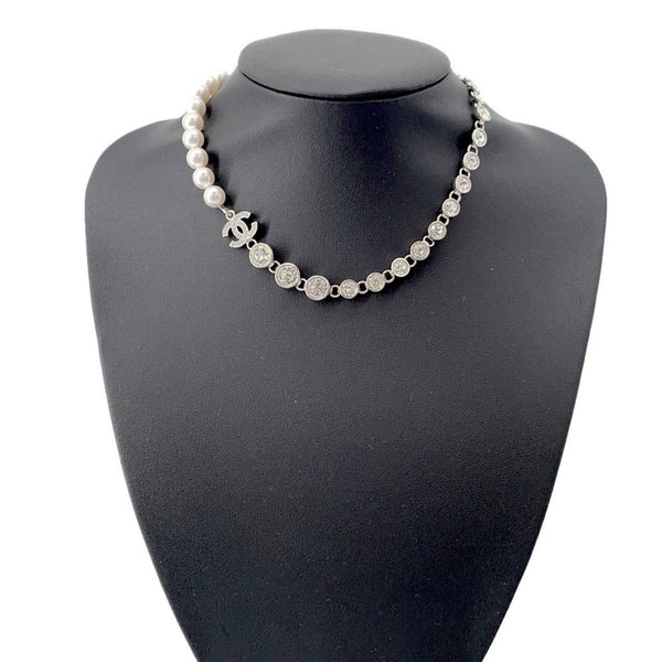 Chanel Coco Mark Necklace with Faux Pearl and Rhinestones, B24, V, ABA625, CHANEL
