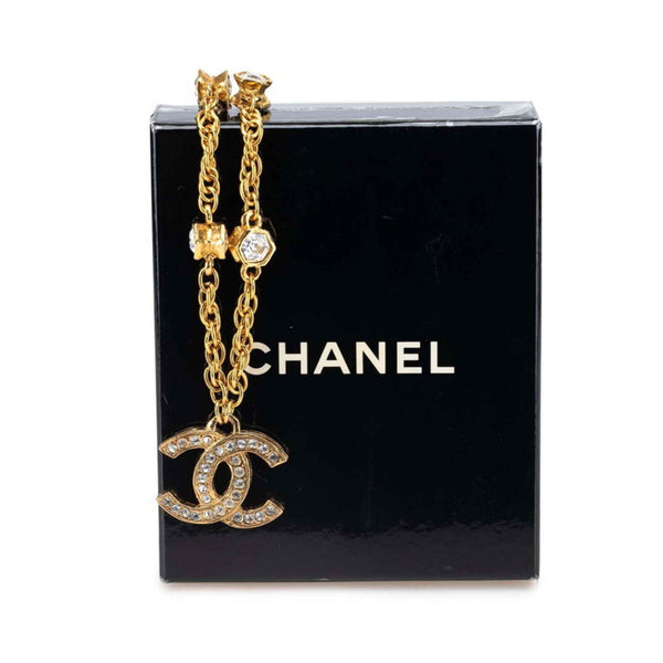 Chanel Coco Mark Pendant Necklace, Gold Plated with Rhinestones, Women\'s, CHANEL