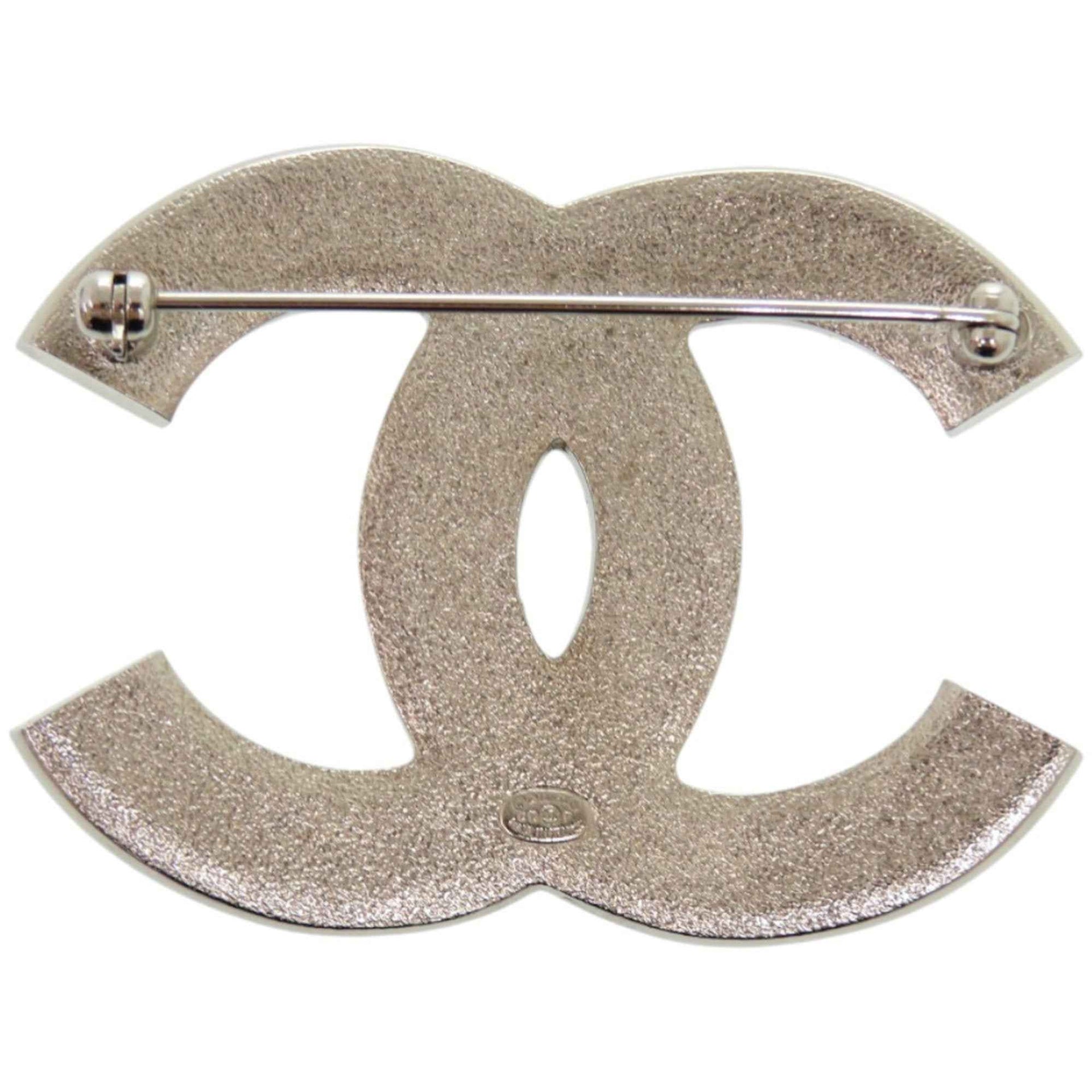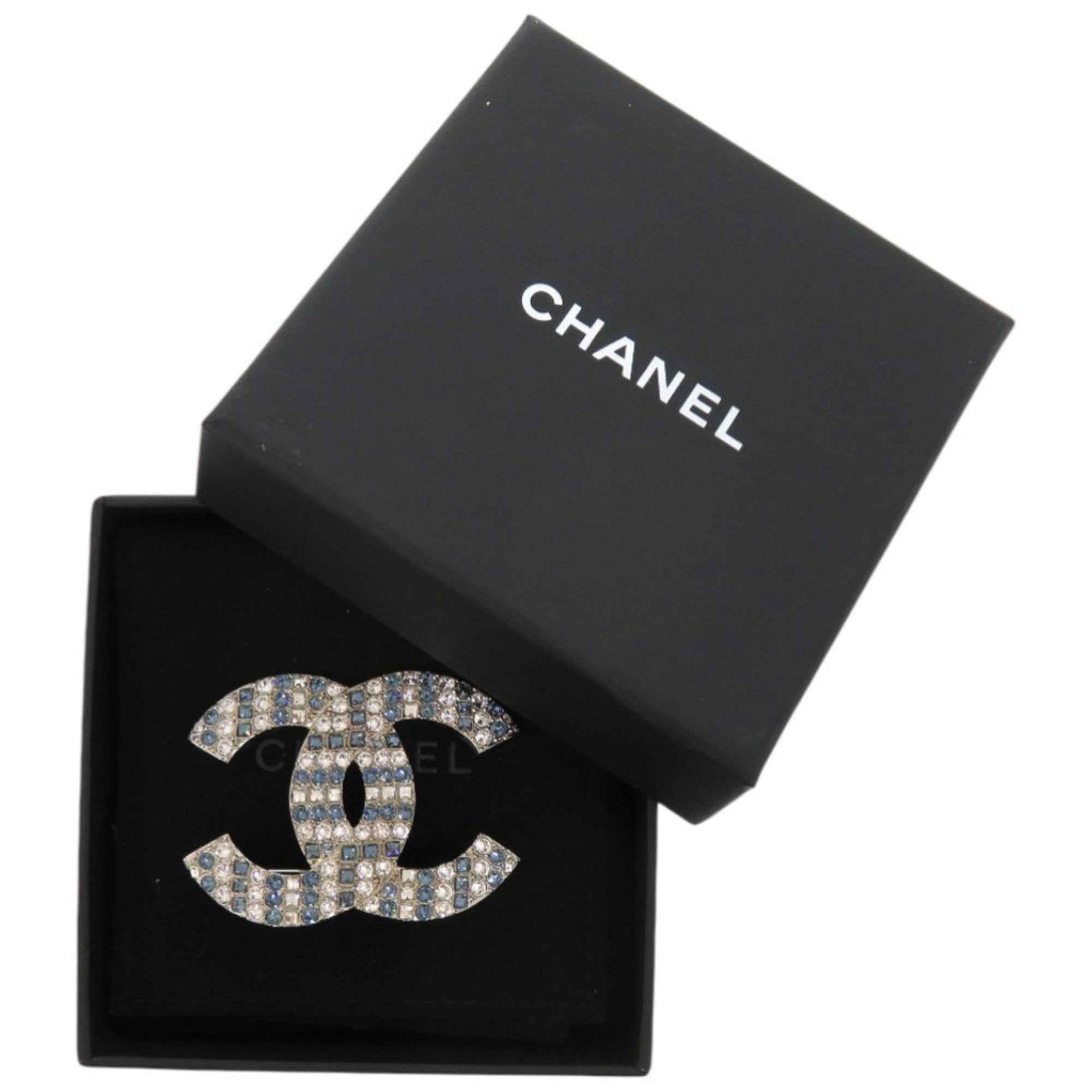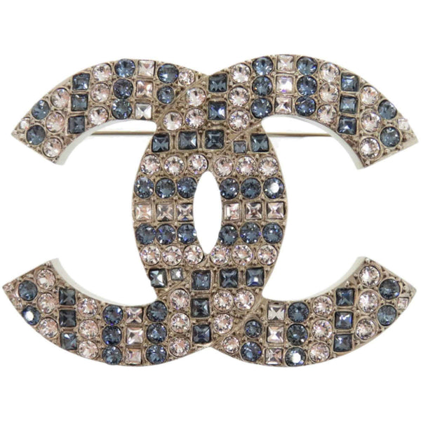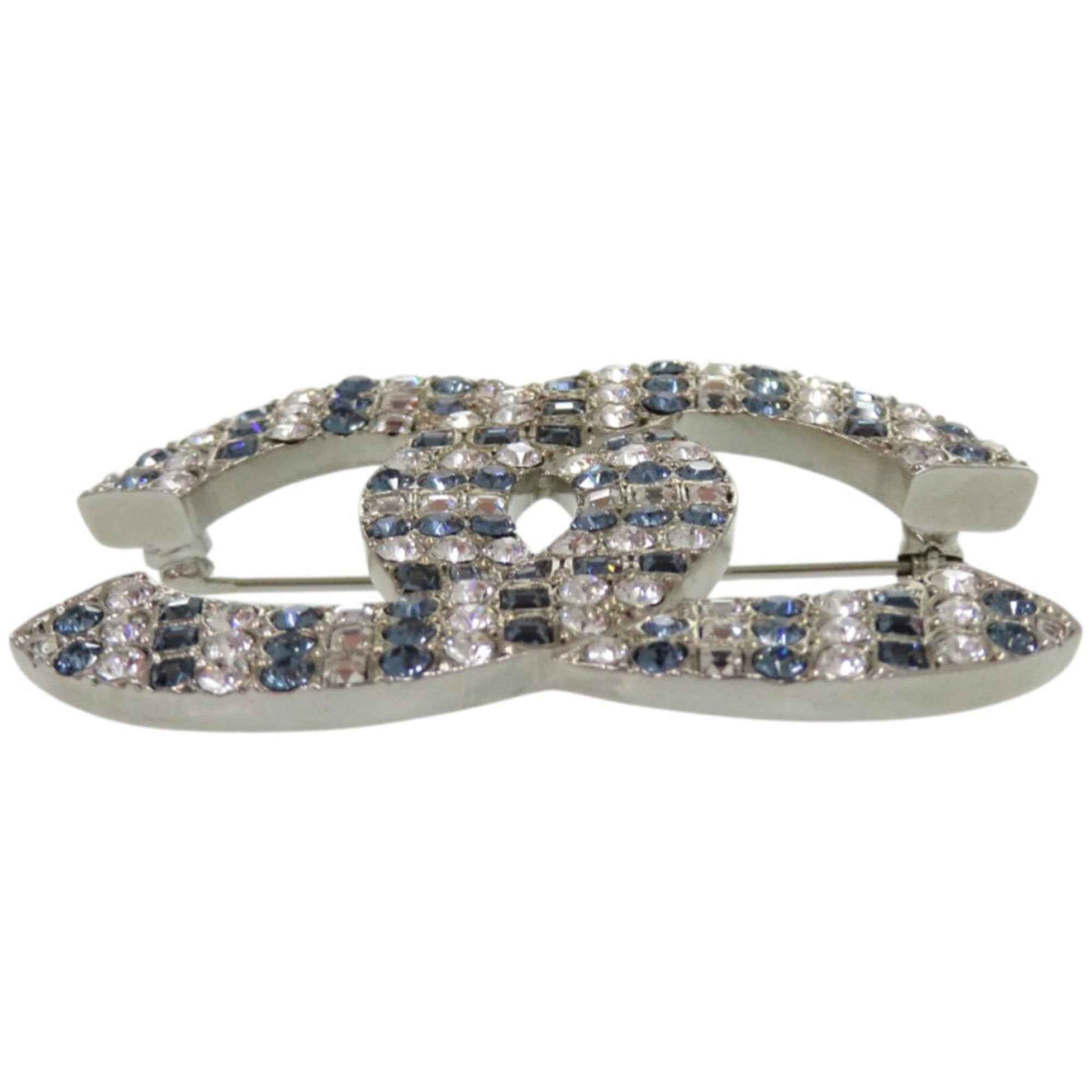 Chanel Coco Mark Rhinestone Metal Silver and Blue Brooch 1673CHANEL