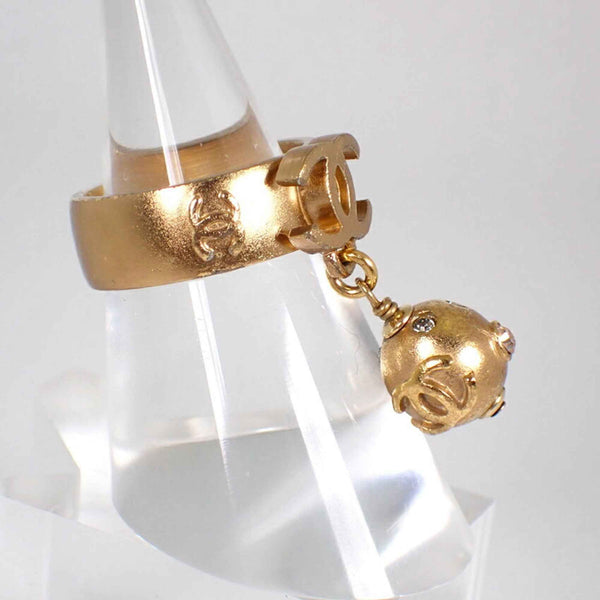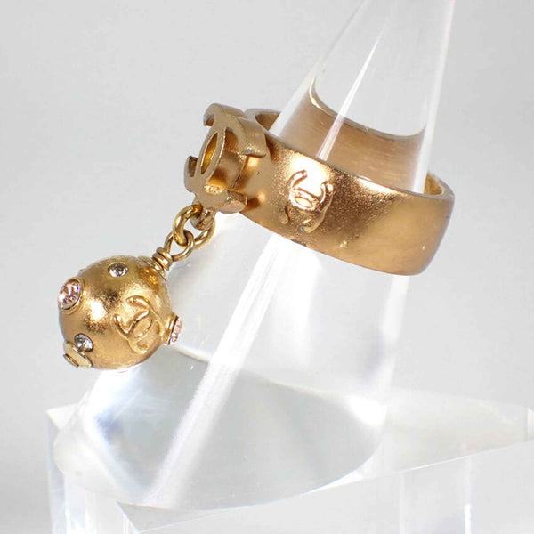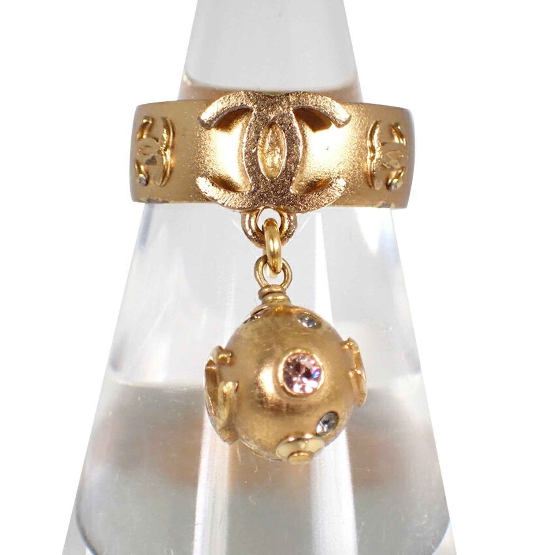 CHANEL Coco Mark Rhinestone Ring, Size 13