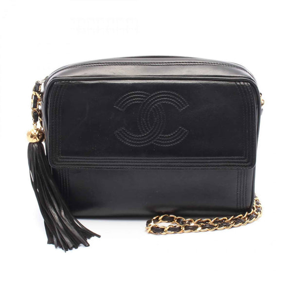 Chanel Coco Mark Shoulder Bag, Lambskin Leather, Women\'s, Black