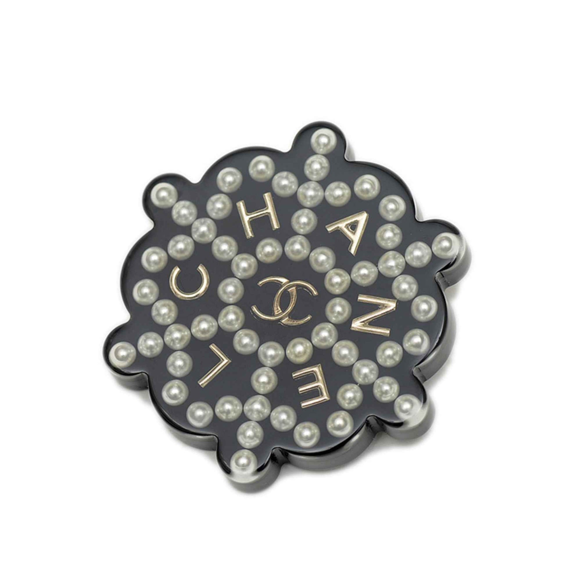 Chanel Coconnege Brooch in Plastic with Imitation Pearl, Black, D18B
