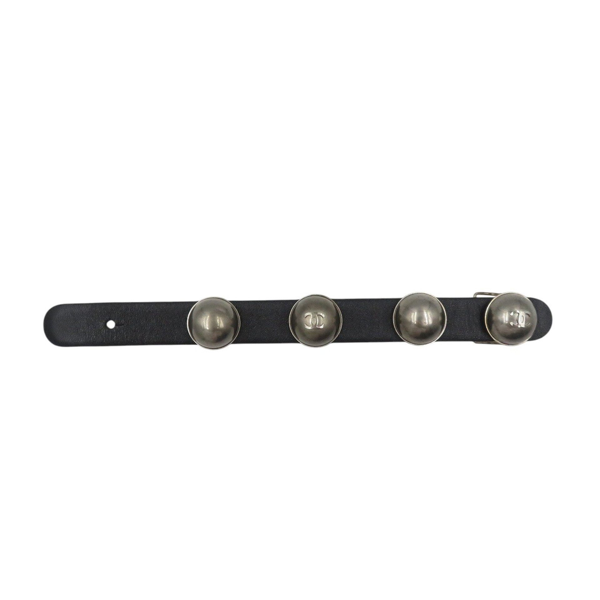 Chanel CUIR VERITABLE Medium Leather, Metal, Black and Silver Bracelet 0055CHANEL