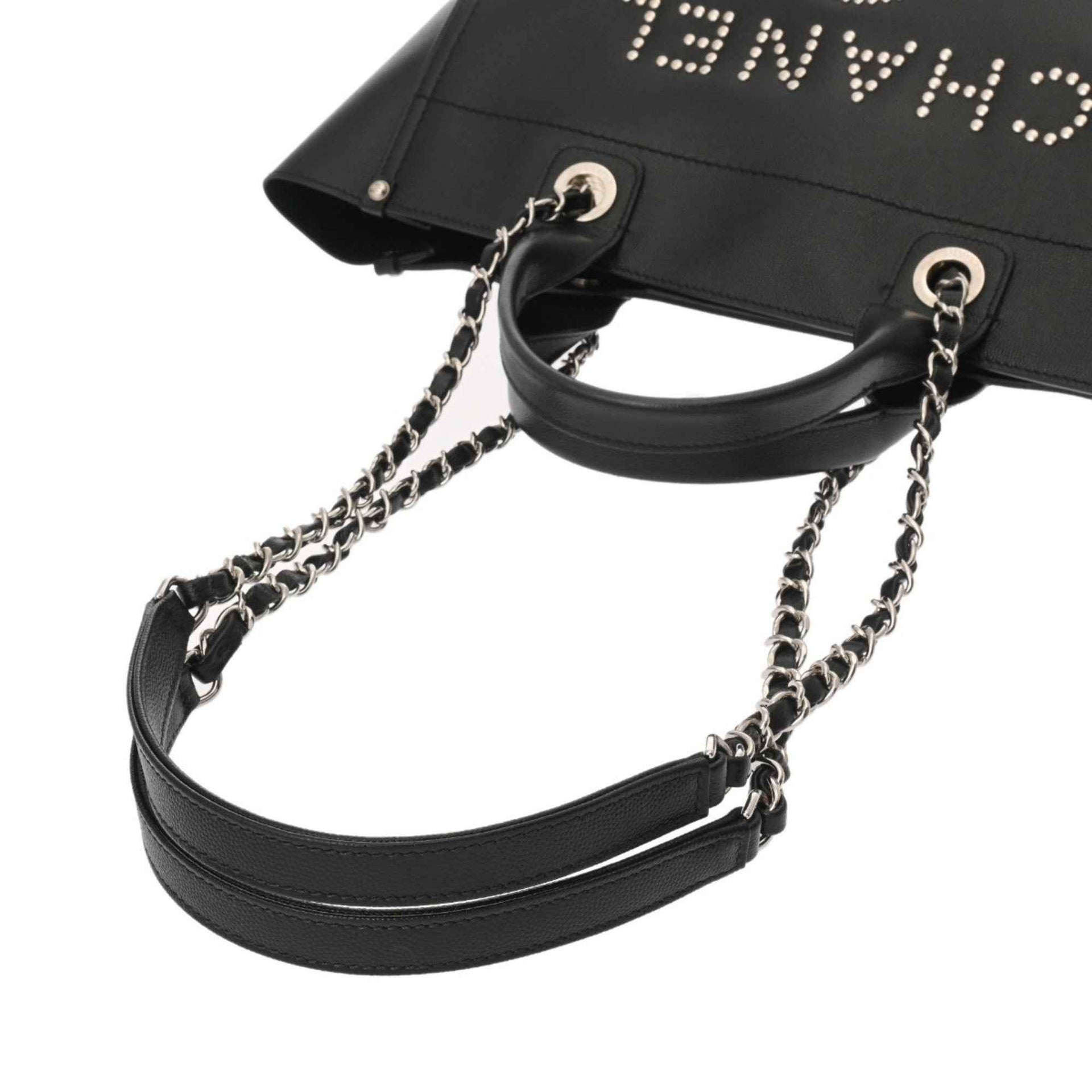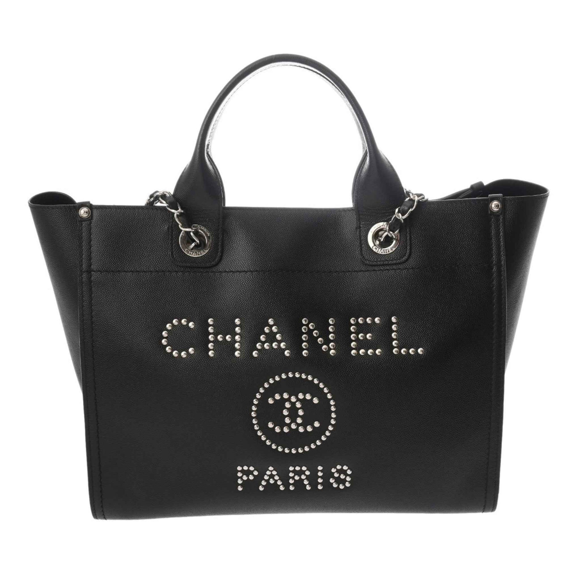 CHANEL Deauville MM Studded Black Caviar Tote Bag (A57067) Women\'s, Rank AB