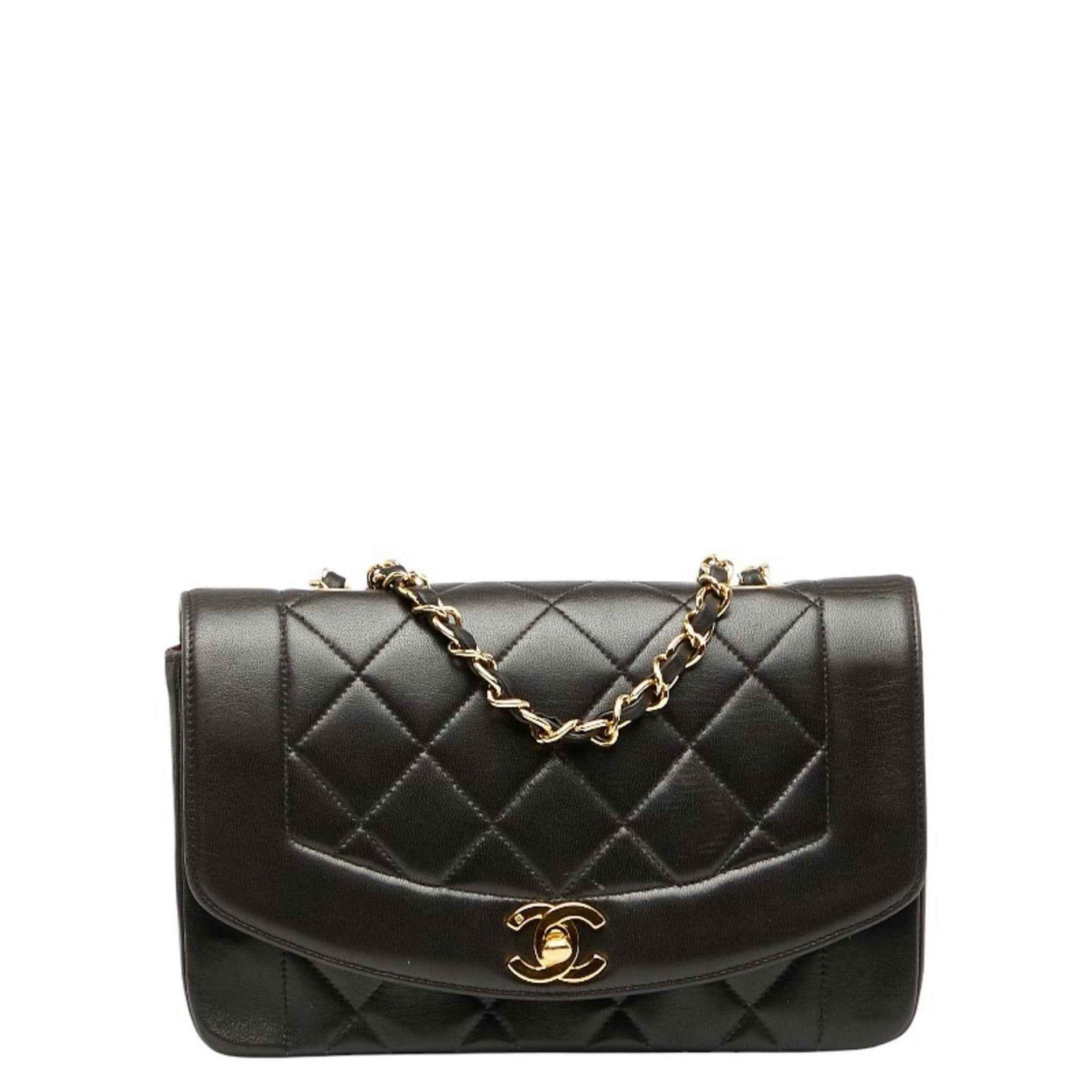 CHANEL Diana 23 Matelasse Coco Mark Chain Shoulder Bag in Black Lambskin for Women