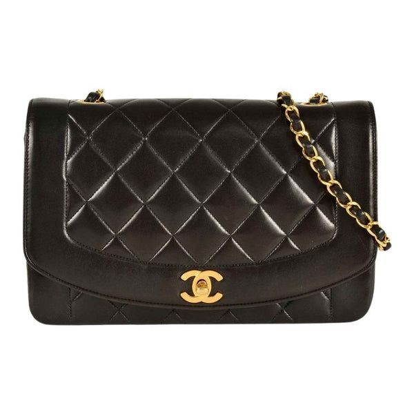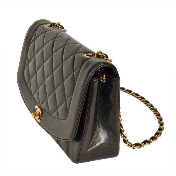 CHANEL Diana 25 Shoulder Bag Lambskin A01165 Black Coco Mark
