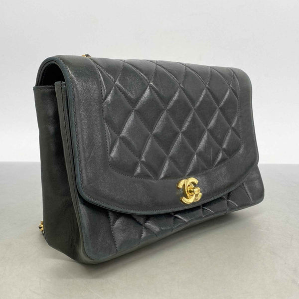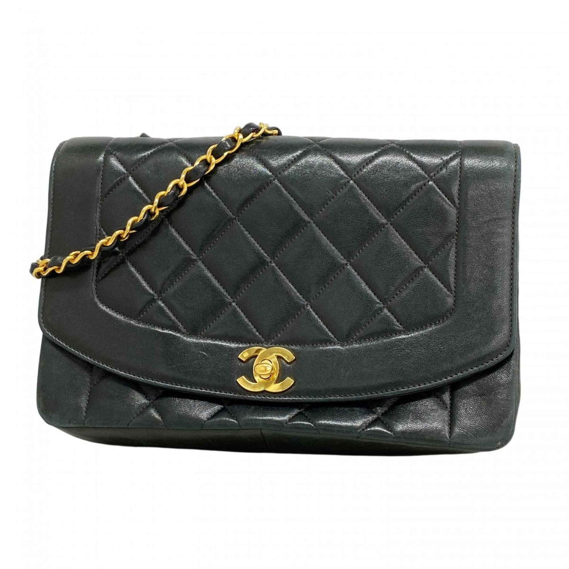 Chanel Diana Matelasse Chain Shoulder Bag in Lambskin, Black, Women\'s