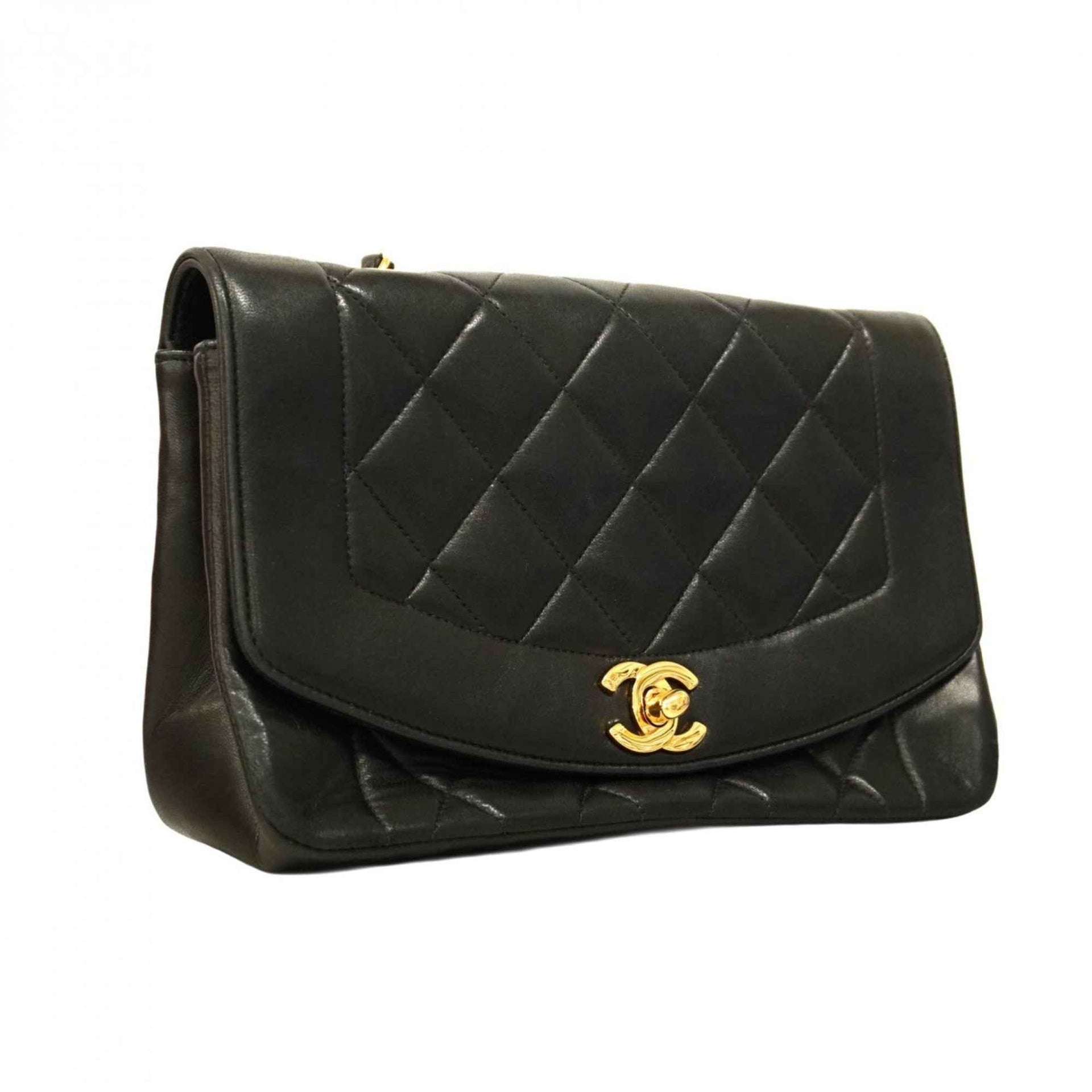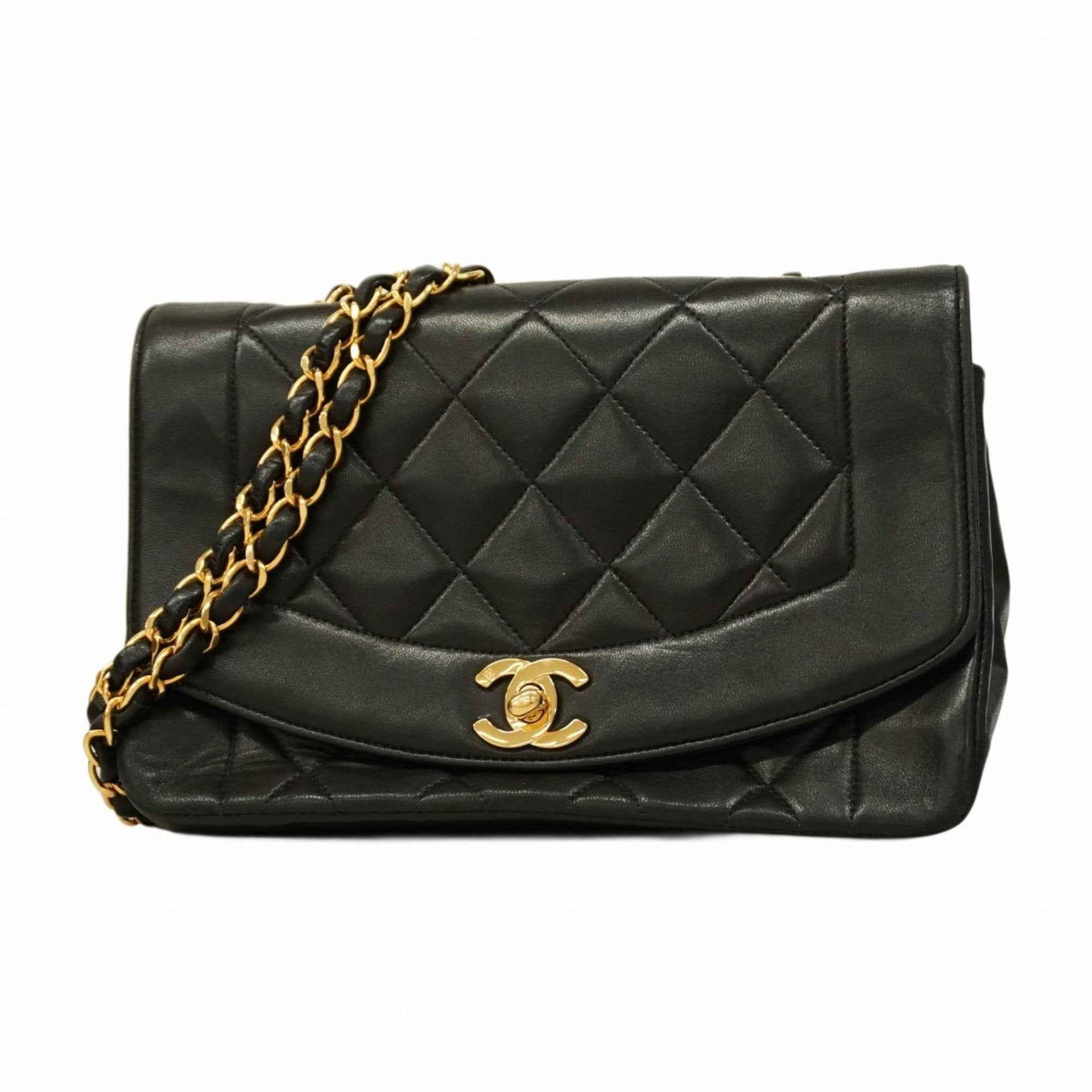 Chanel Diana Shoulder Bag, Chain Lambskin, Black, Women\'s