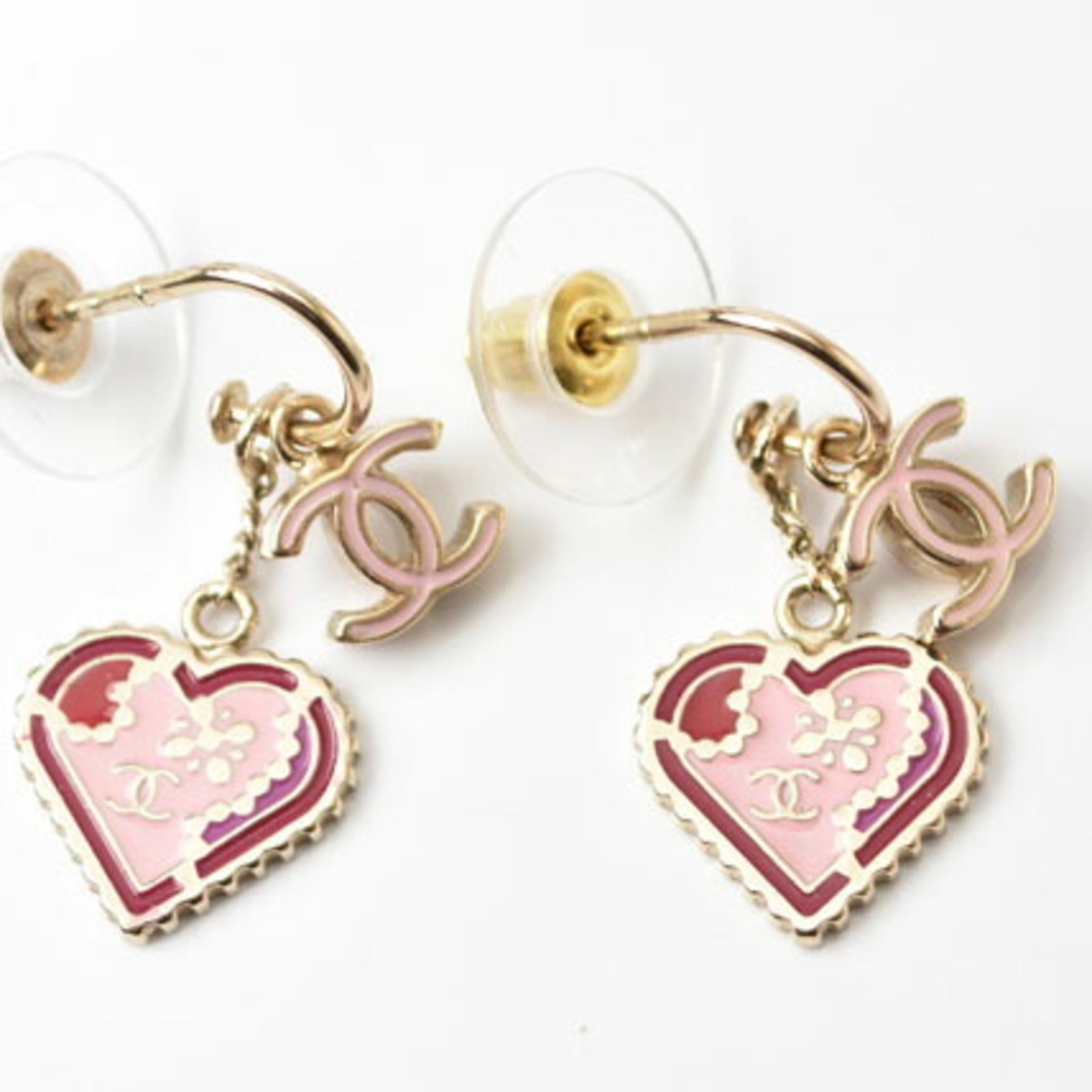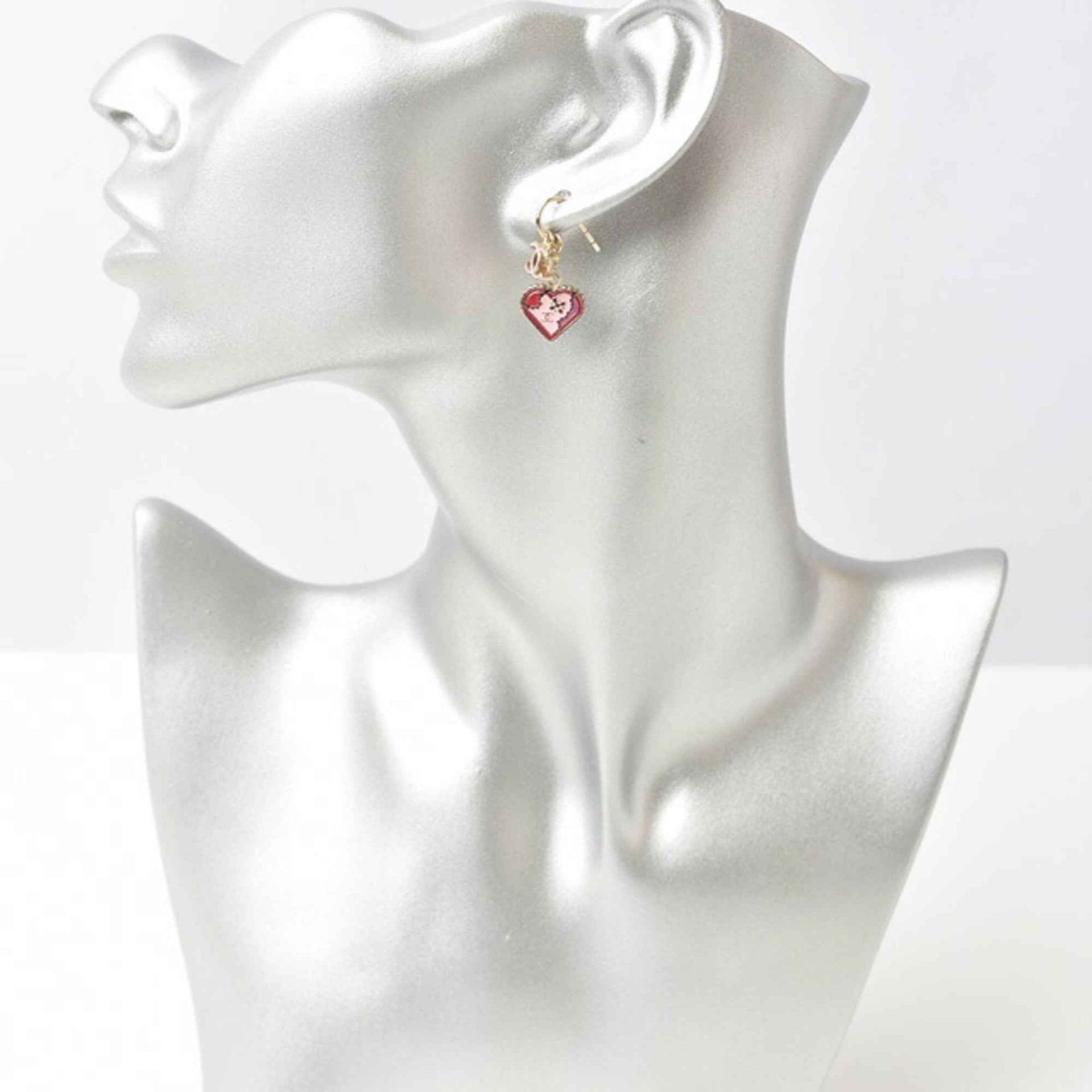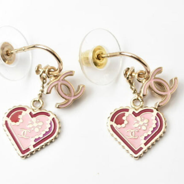 Chanel Earrings CHANEL Swing CC Mark Heart Motif Pink Gold