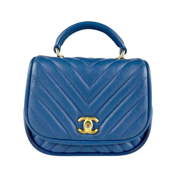 CHANEL Handbag Shoulder Bag V-Stitch Leather Blue Gold Women\'s z7078