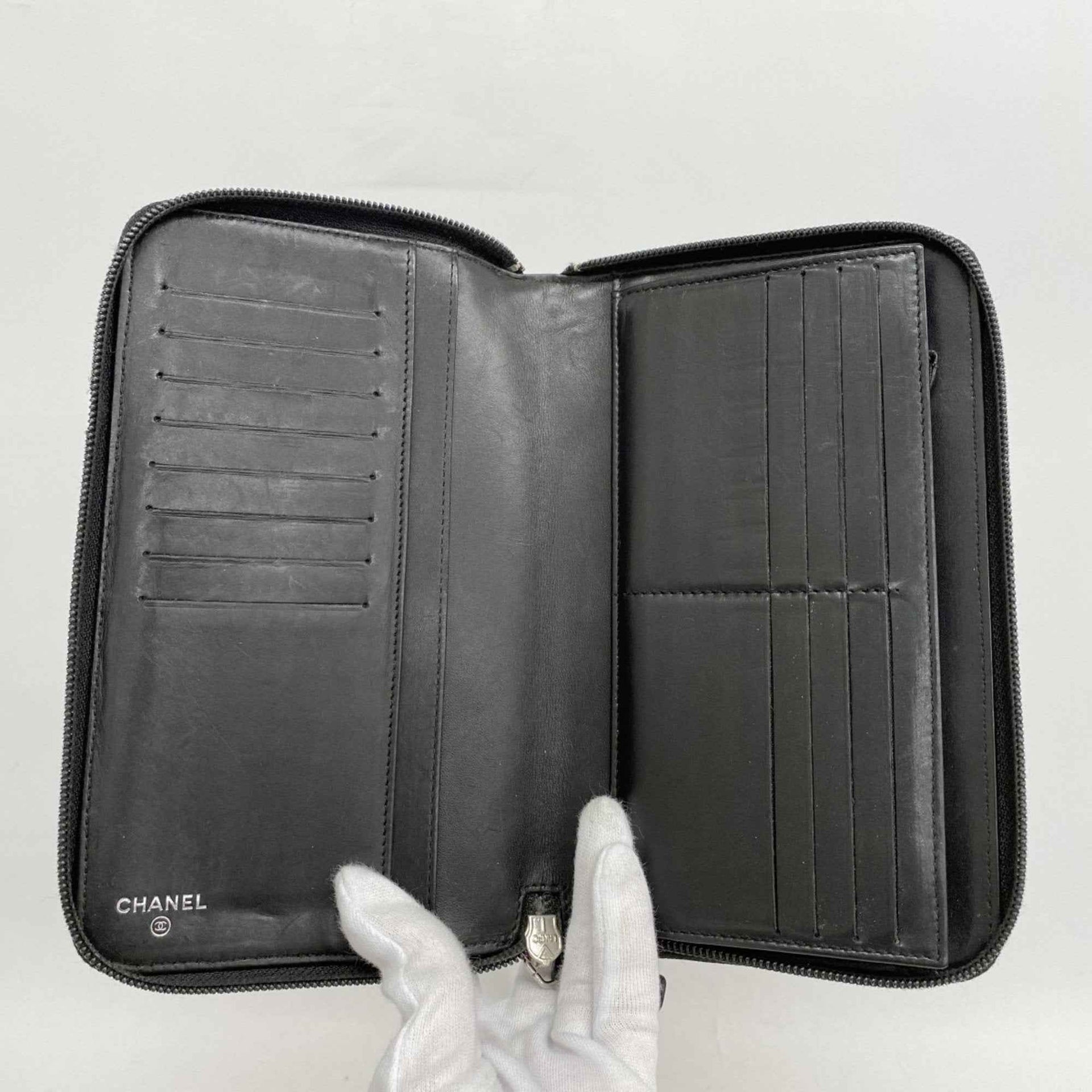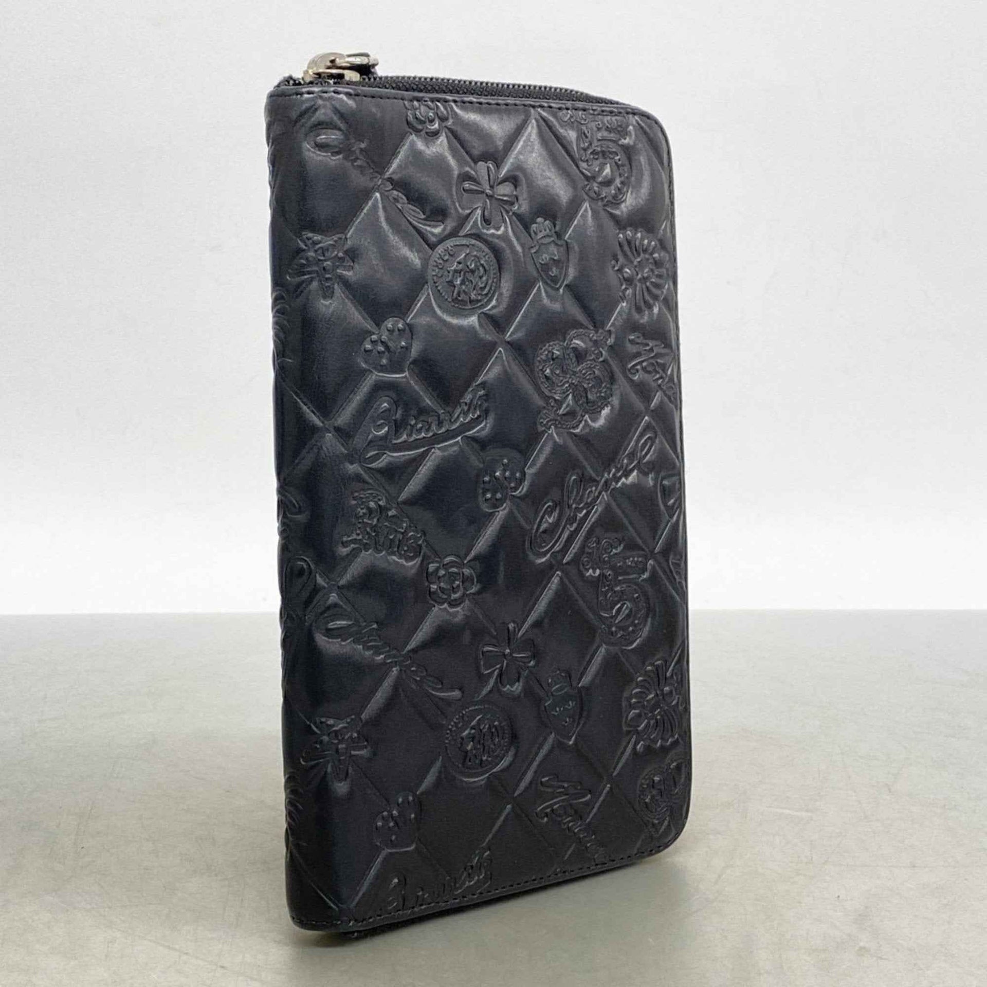 Chanel Icon Leather Long Wallet Black Women\'s