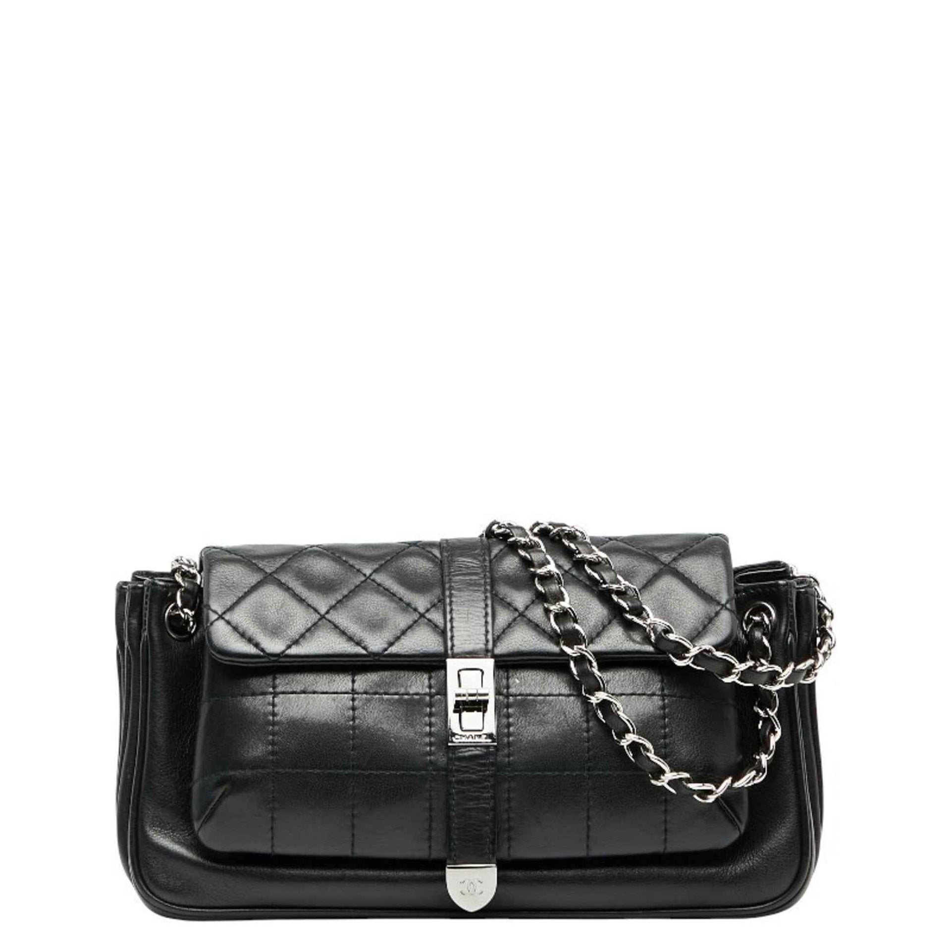 CHANEL Matelasse 2.55 Chocolate Bar Chain Shoulder Bag in Black Lambskin for Women