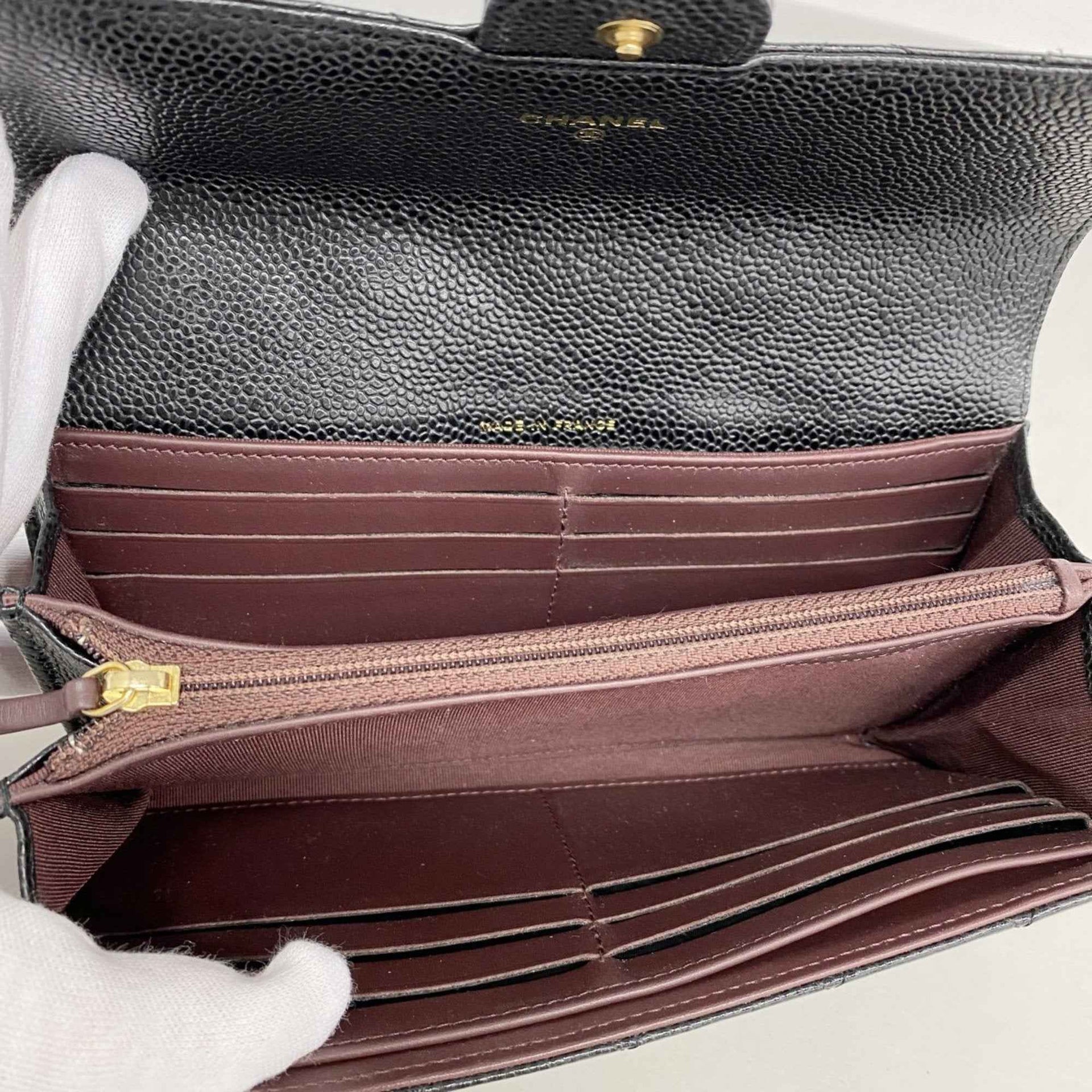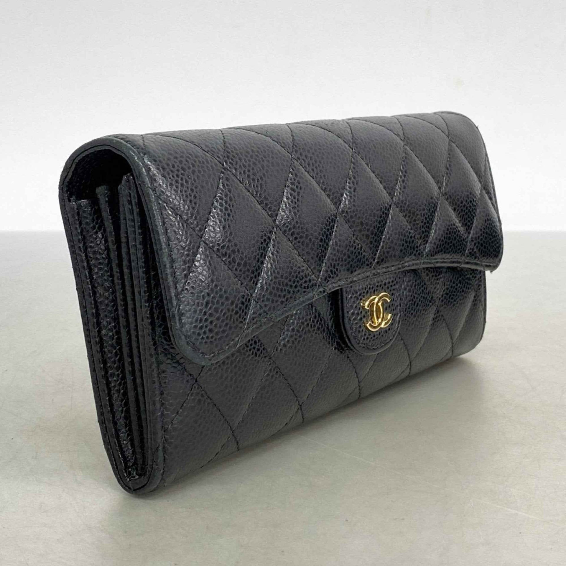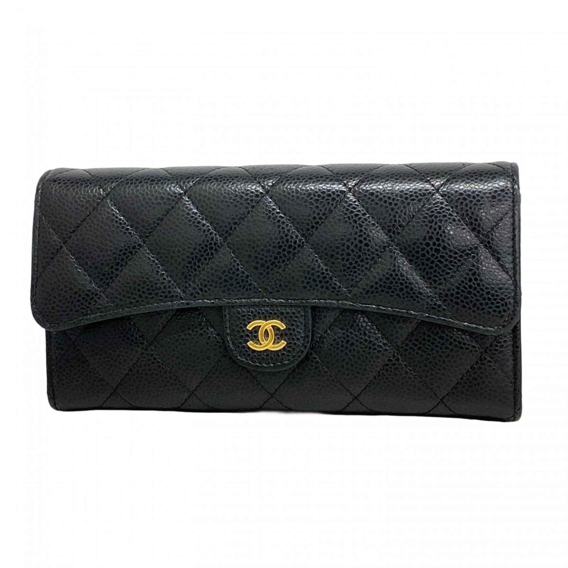 Chanel Matelasse Caviar Leather Long Wallet, Black, Women\'s