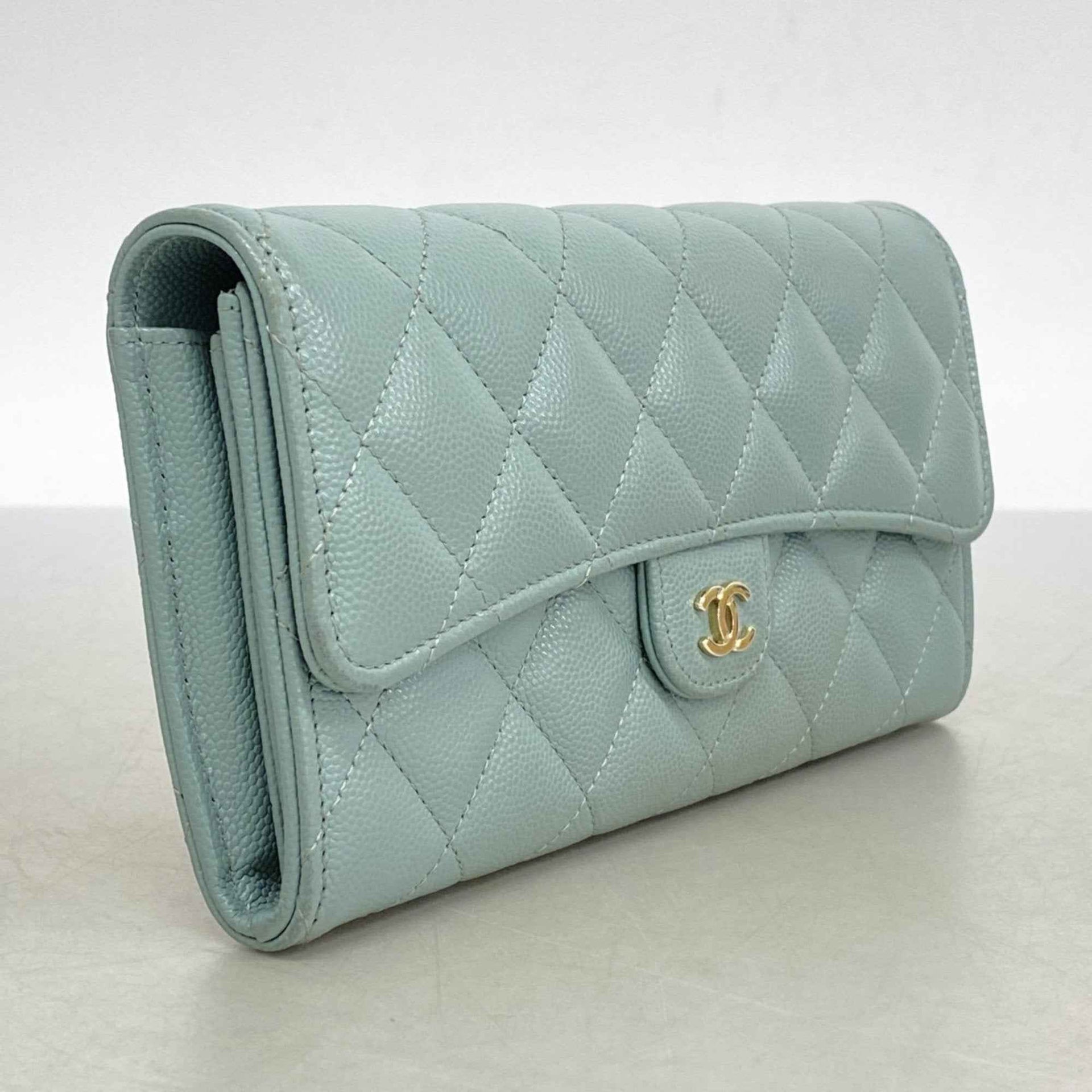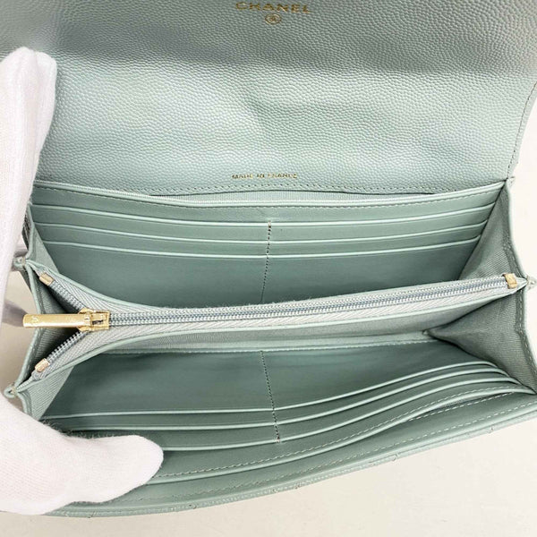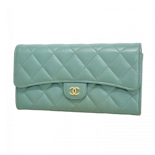 Chanel Matelasse Caviar Leather Long Wallet in Blue Champagne for Women