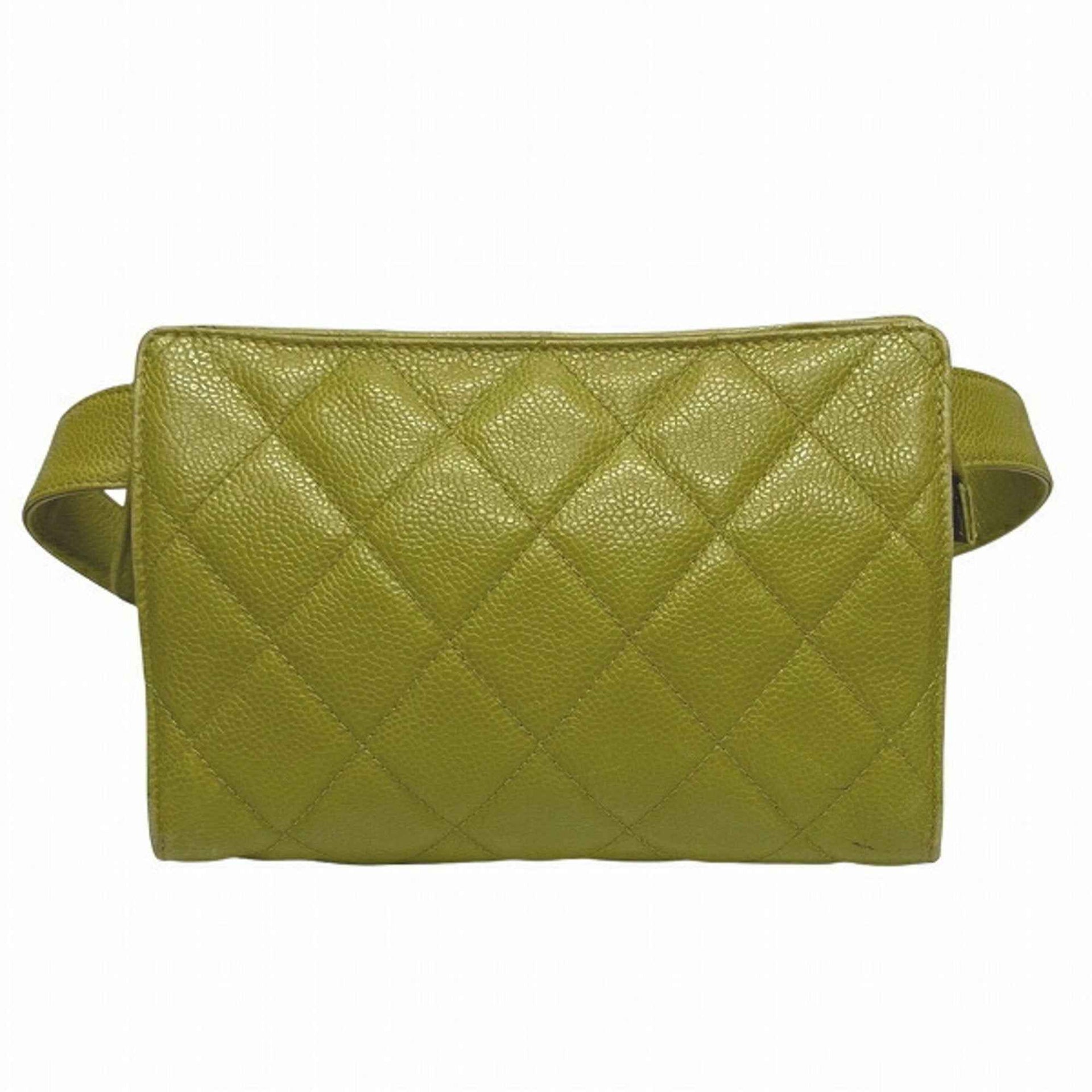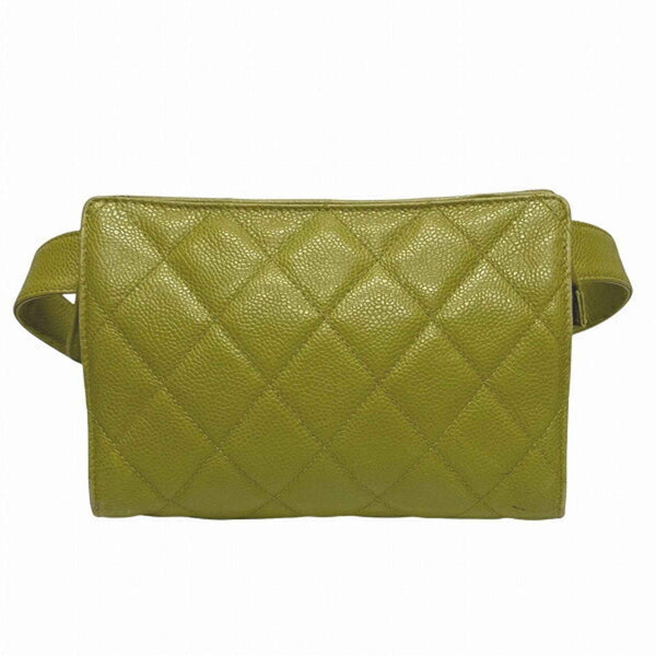 CHANEL Matelasse Caviar Skin Light Green Bag Waist Pouch Body for Women