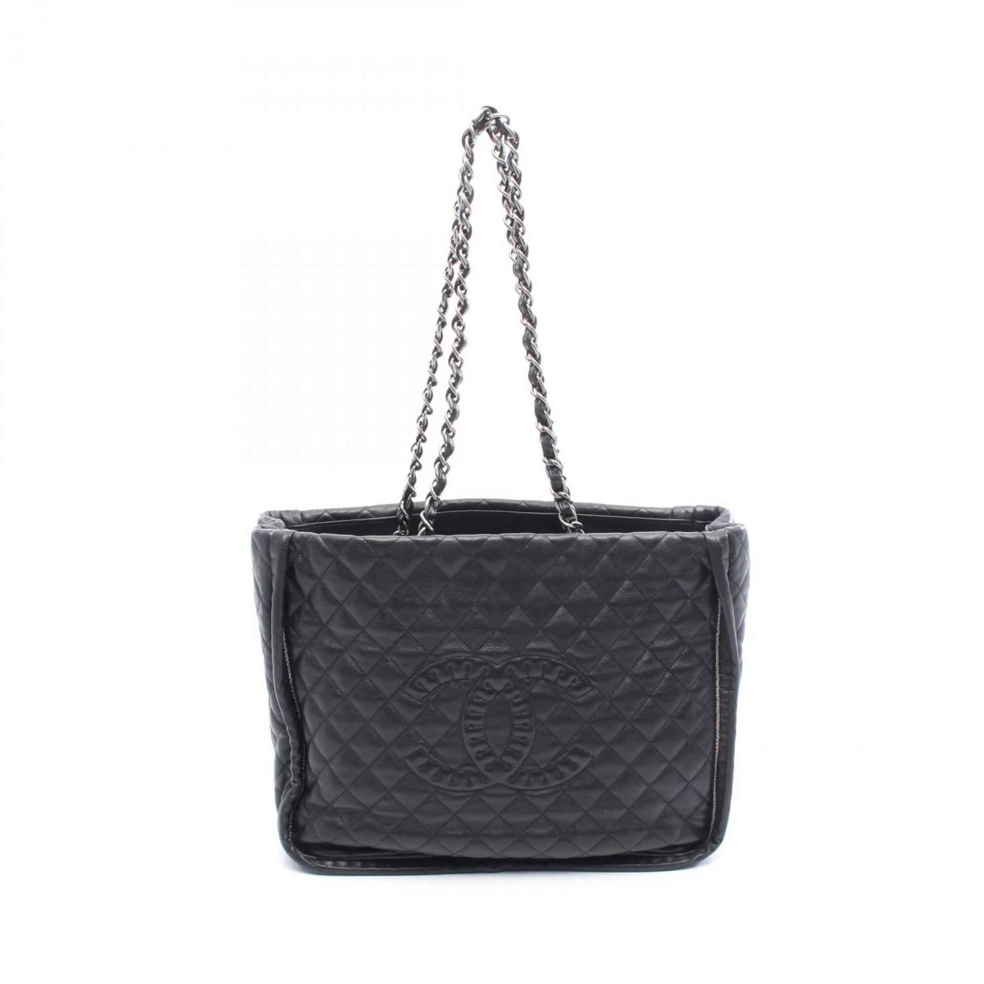 CHANEL Matelasse Chain Tote Bag in Lambskin Leather, Black