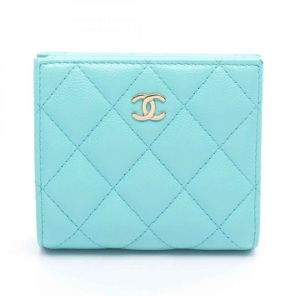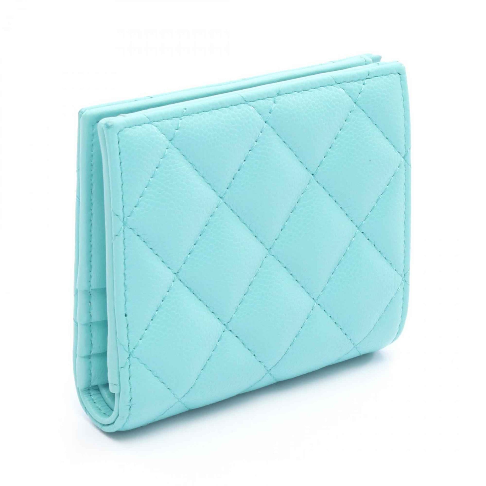 CHANEL Matelasse Classic Small Wallet, Bi-fold Grained Calfskin Leather, Women\'s, Green, AP3178