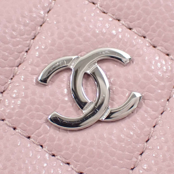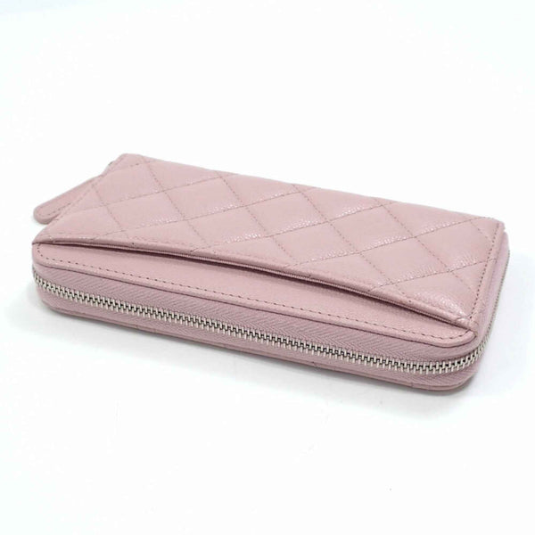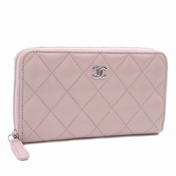 Chanel Matelasse Classic Zip Wallet, Women\'s, Pink Grained Shiny Calfskin, Genuine Leather, Coco Mark, AP0226