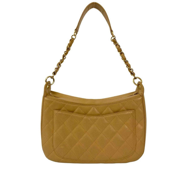 CHANEL Matelasse Coco Mark Caviar Skin Semi-One Shoulder Bag, Beige, 79718