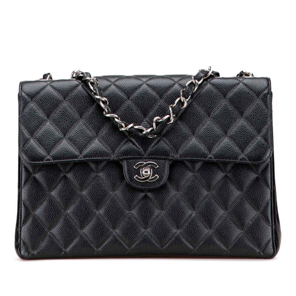 CHANEL Matelasse Coco Mark Chain Shoulder Bag in Black Caviar Skin for Women