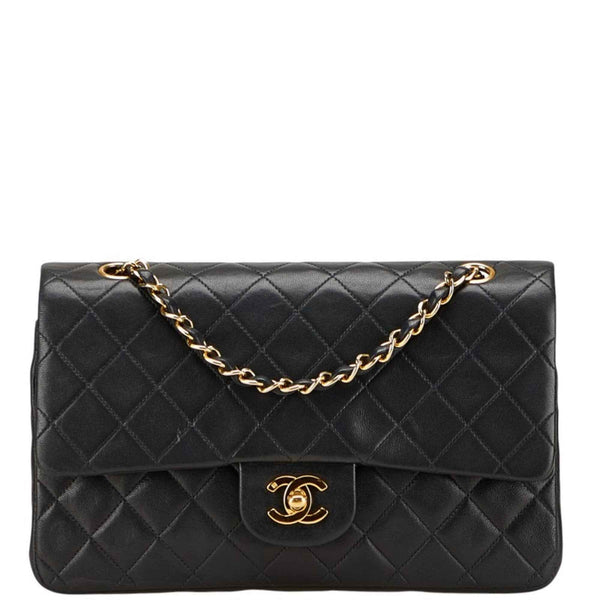 CHANEL Matelasse Coco Mark Double Flap Chain Shoulder Bag Handbag Black Lambskin Women\'s