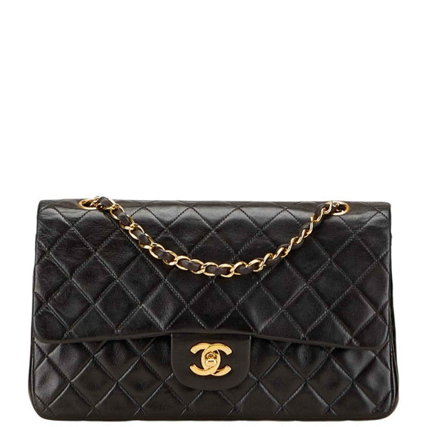CHANEL Matelasse Coco Mark Double Flap Chain Shoulder Bag Handbag Black Lambskin Women\'s