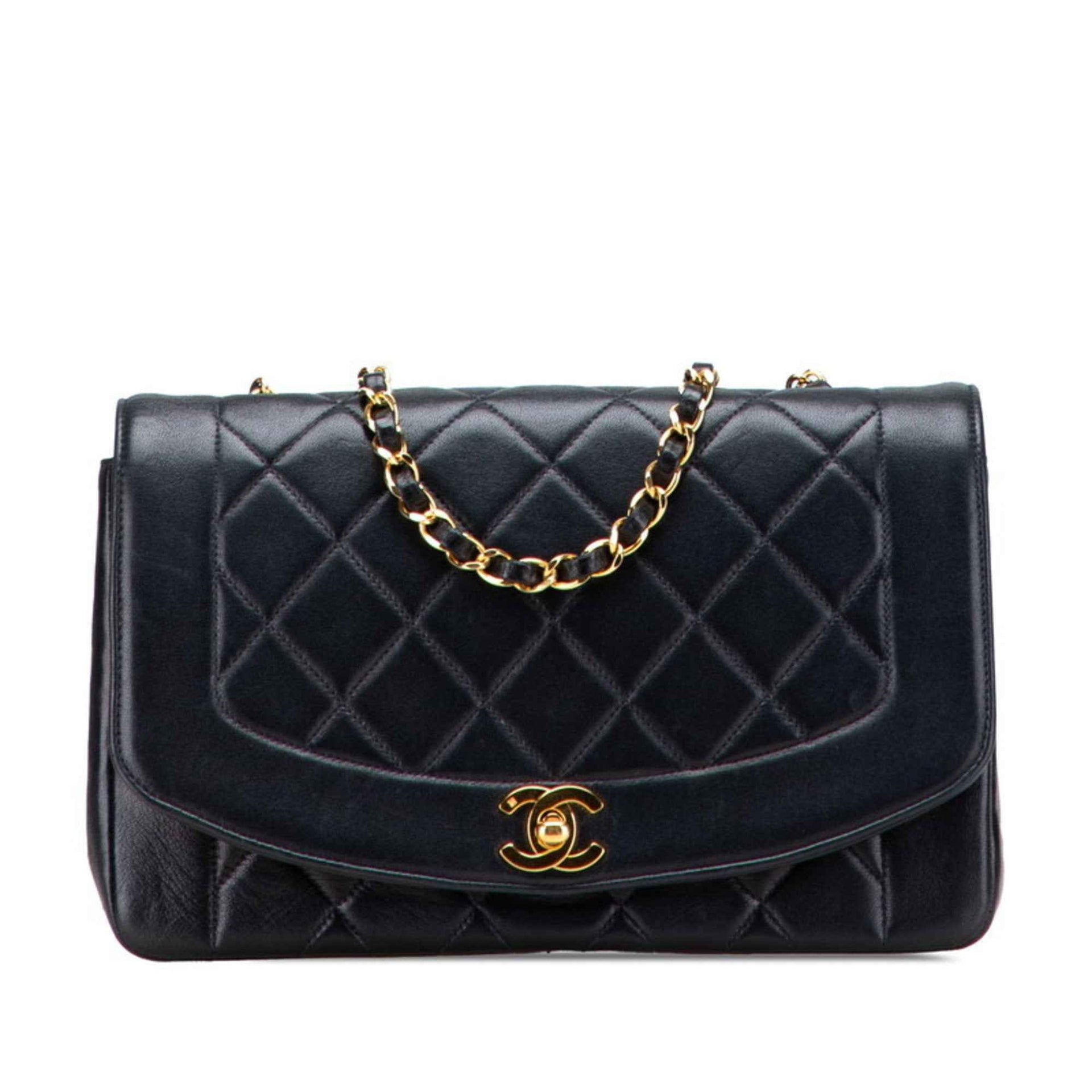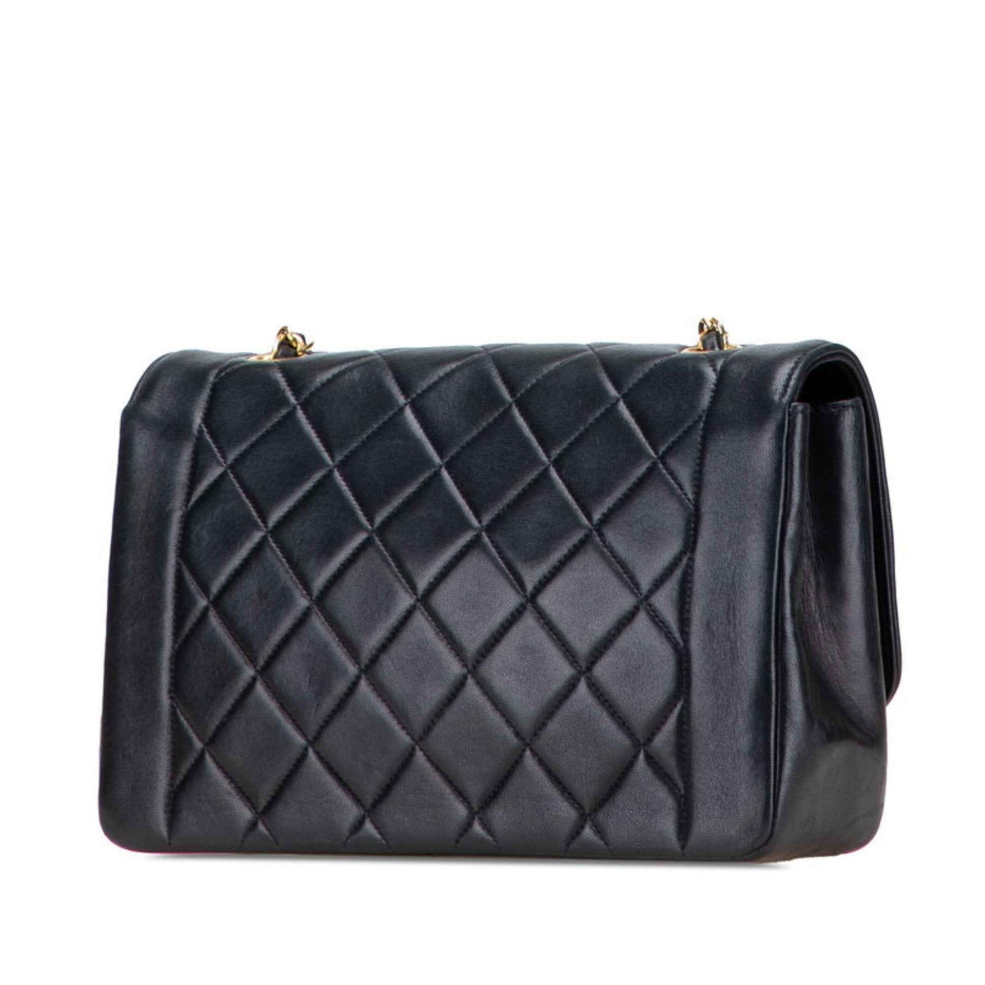 CHANEL Matelasse Diana 25 Chain Shoulder Bag in Black Lambskin for Women