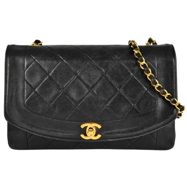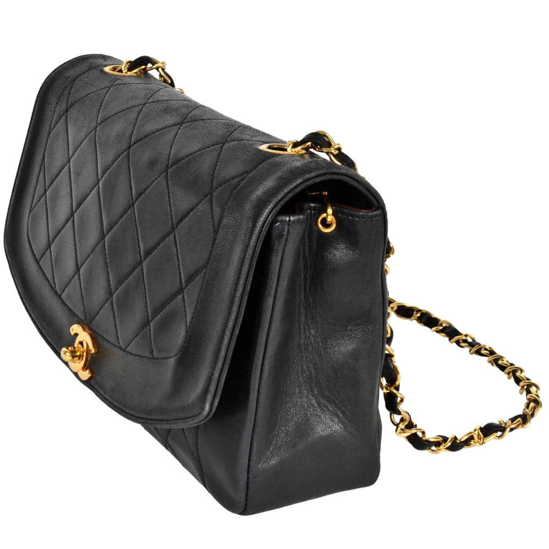 CHANEL Matelasse Diana Chain Shoulder Bag Lambskin A01165 Black 7-digit Coco Mark