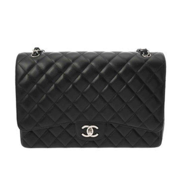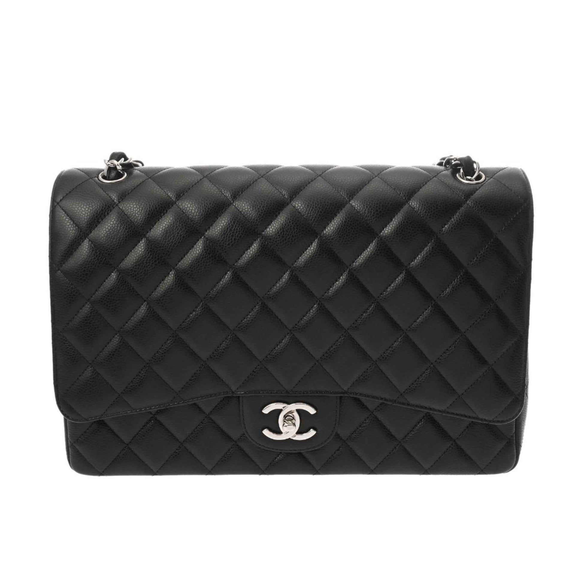 CHANEL Matelasse Double Flap Chain Shoulder Bag, 33cm, Black, A58601, Women\'s Caviar Skin Bag