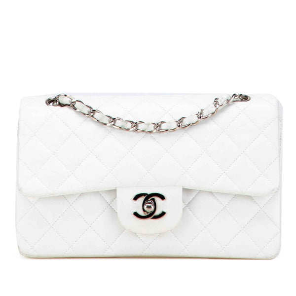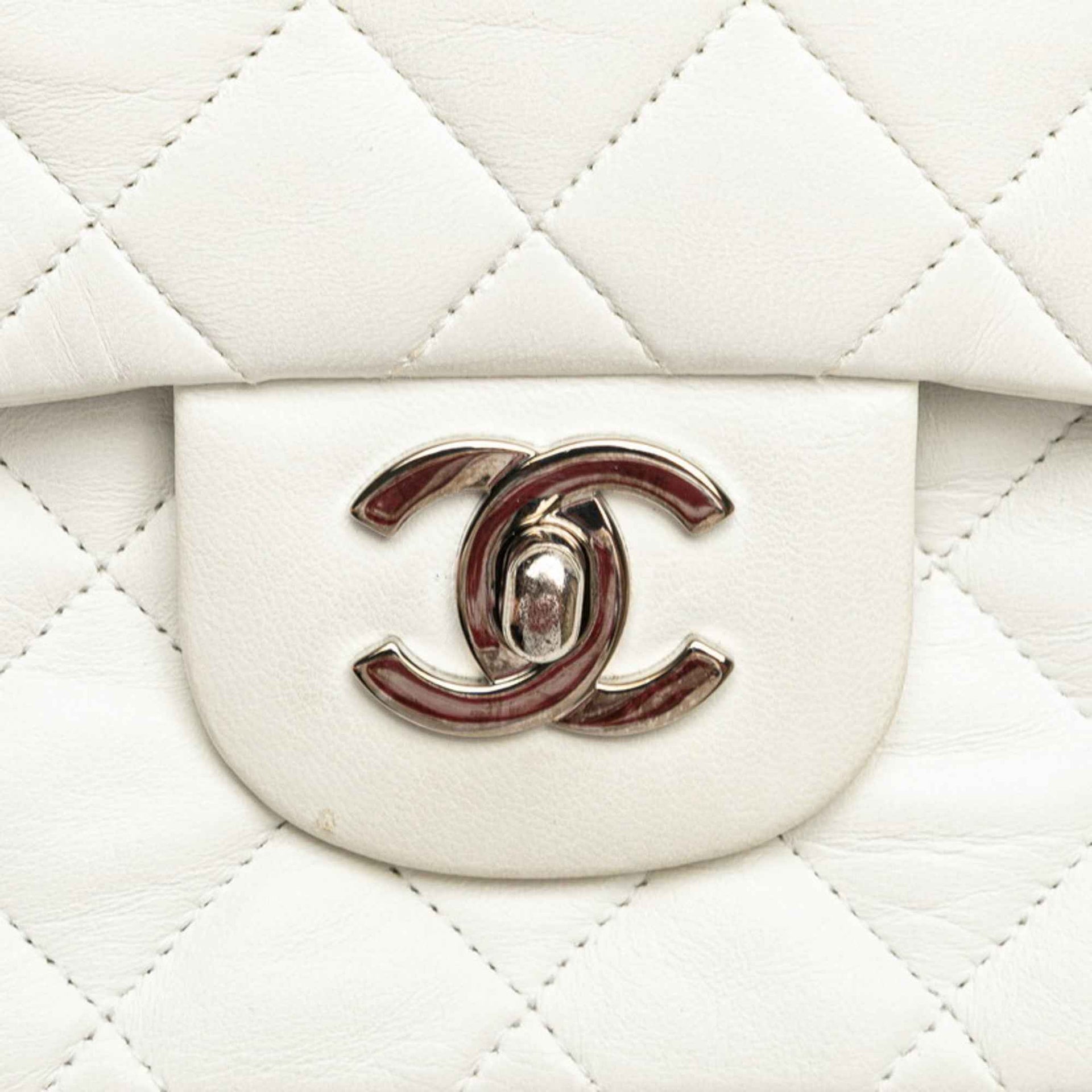 CHANEL Matelasse Double Flap Coco Mark Chain Shoulder Bag in White Lambskin for Women
