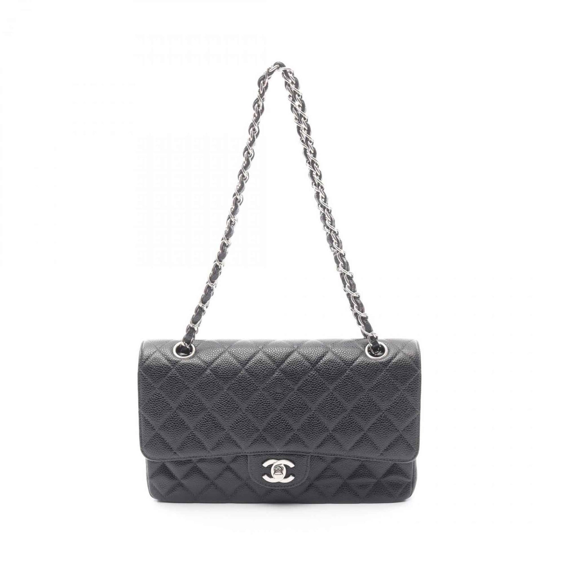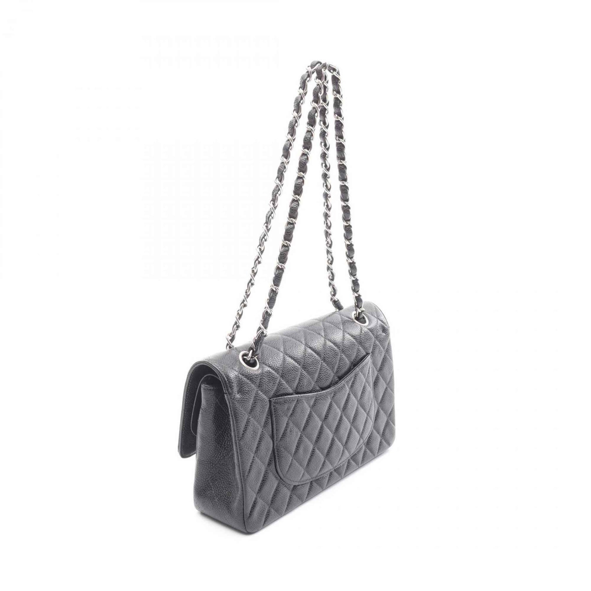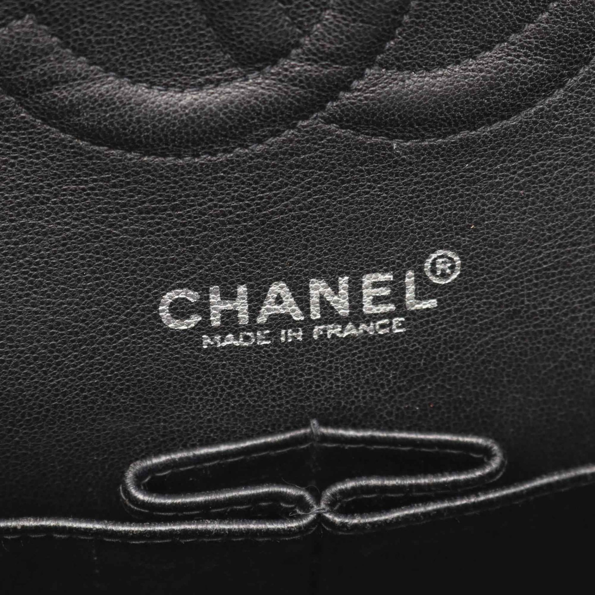 CHANEL Matelasse Double Flap Shoulder Bag in Calfskin Leather, Black