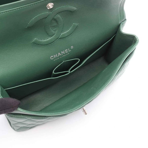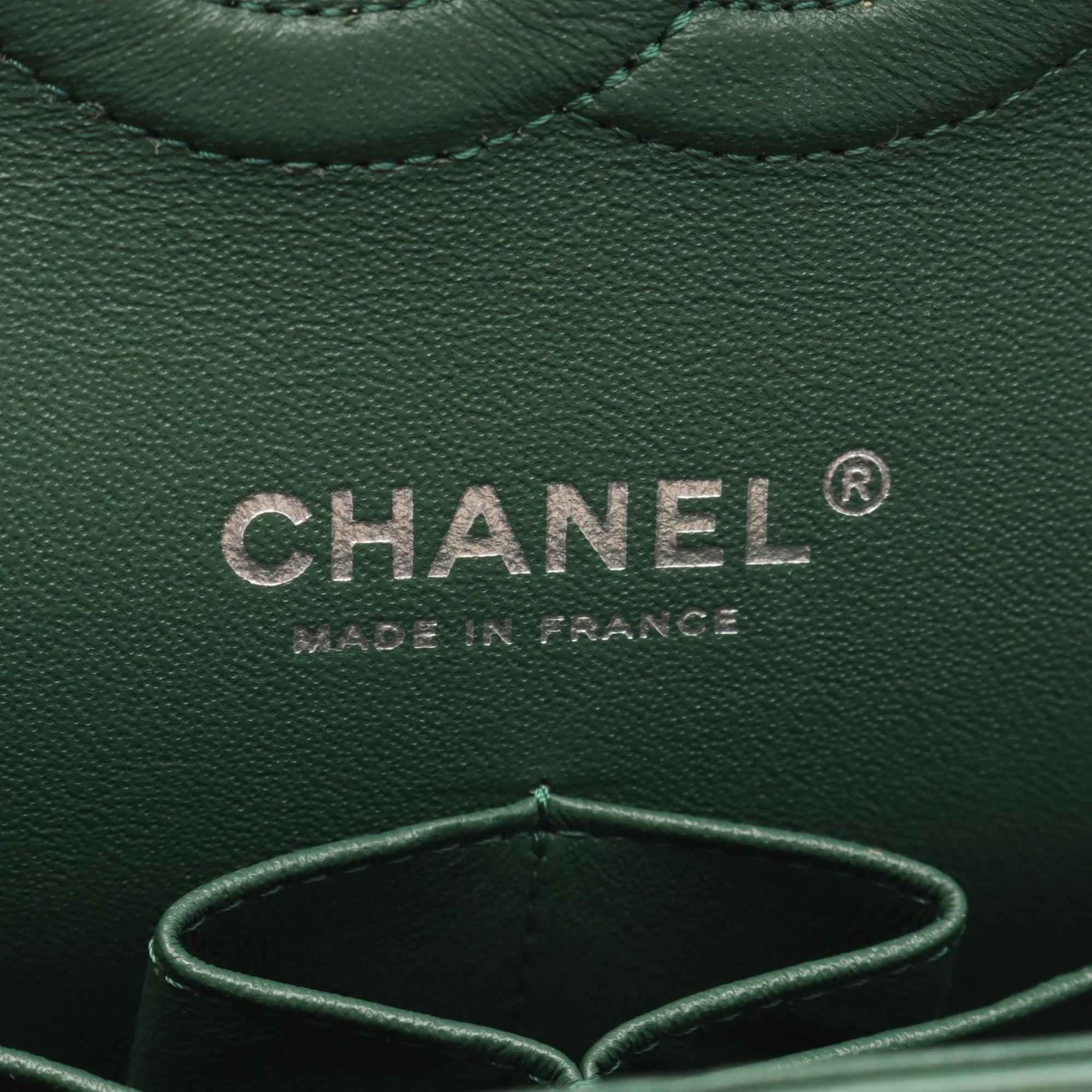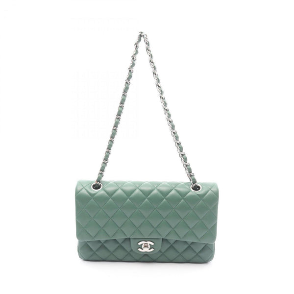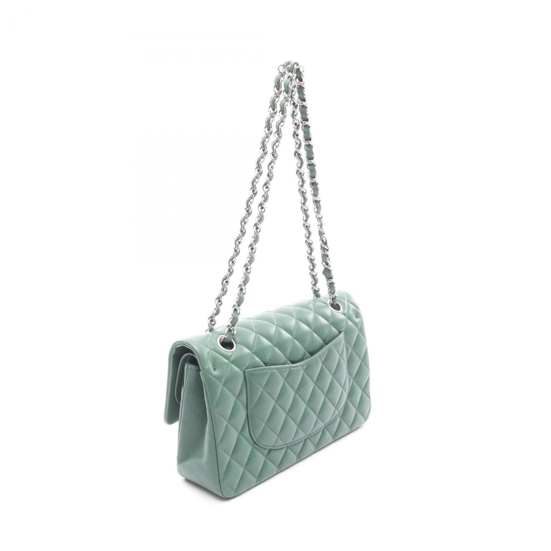 CHANEL Matelasse Double Flap Shoulder Bag in Lambskin Leather, Green