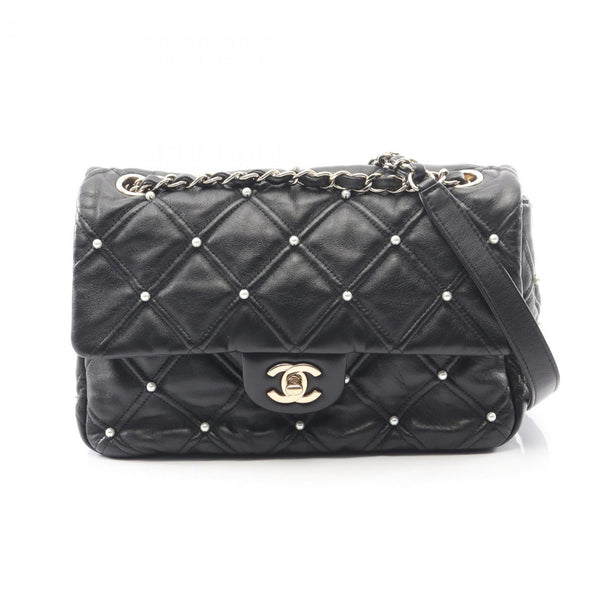 CHANEL Matelasse Faux Pearl Shoulder Bag, Handbag, Lambskin Leather, Women\'s, Black, AS1202