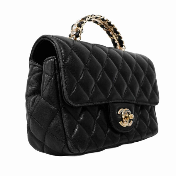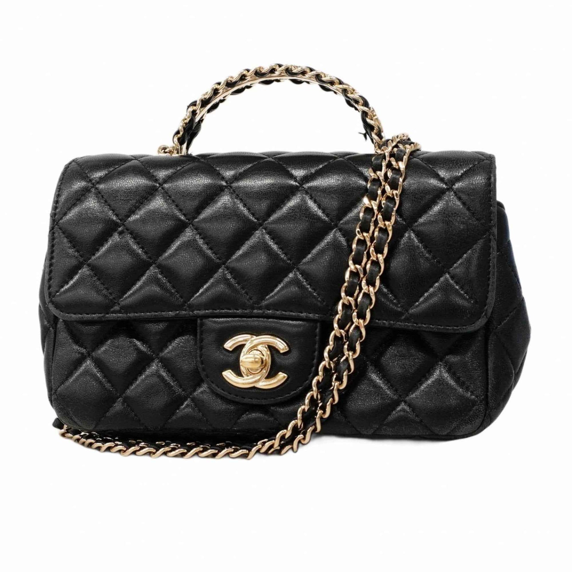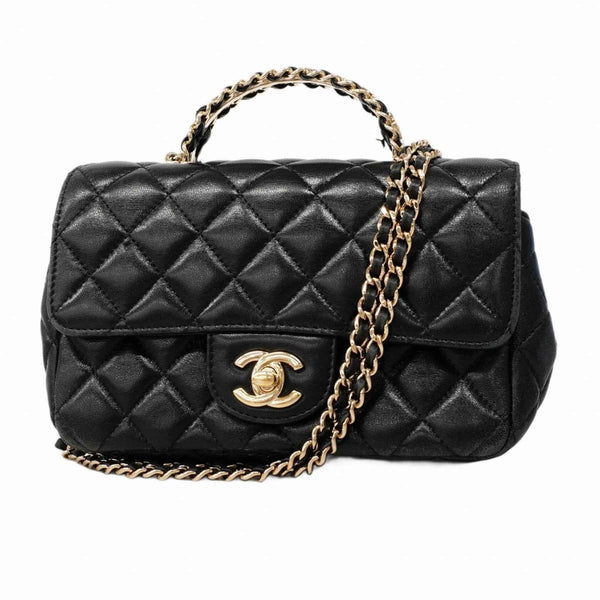 Chanel Matelasse Handbag with Chain Shoulder Strap, Black and Champagne Lambskin, 2-Way Bag for Women