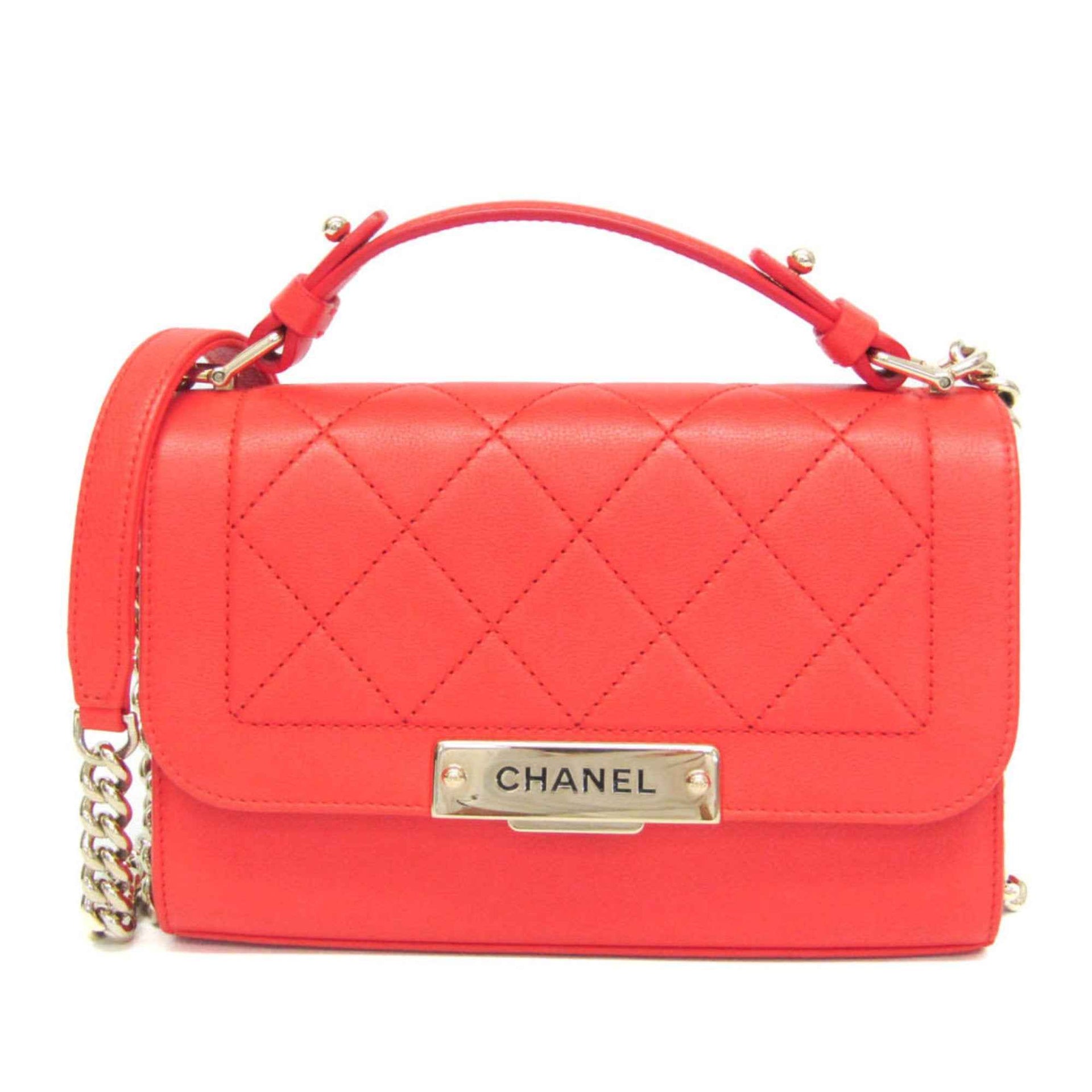 Chanel Matelasse Label Click Chain Shoulder Bag Women\'s Leather Shoulder Bag Orange