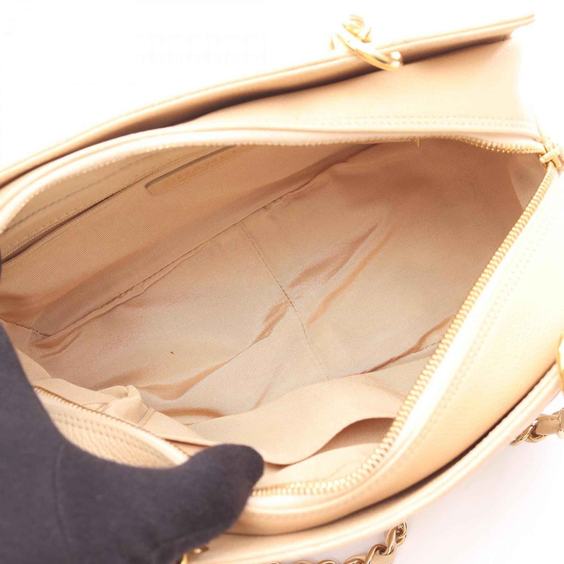 CHANEL Matelasse Large Coco Mark Shoulder Bag in Calfskin Leather, Beige