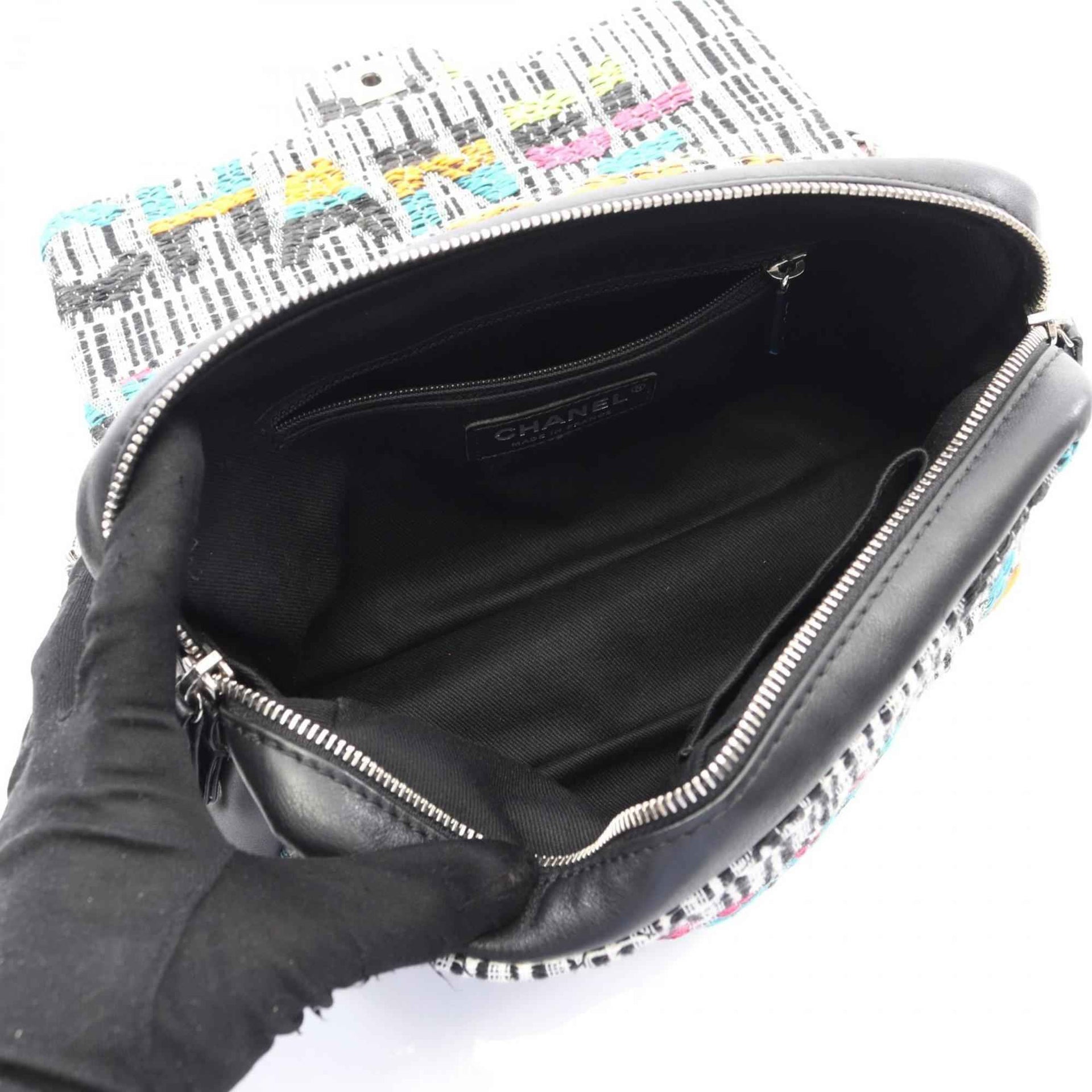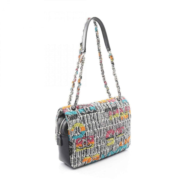 CHANEL Matelasse Shoulder Bag, Fabric and Leather, Women\'s, White, Black, Multicolor