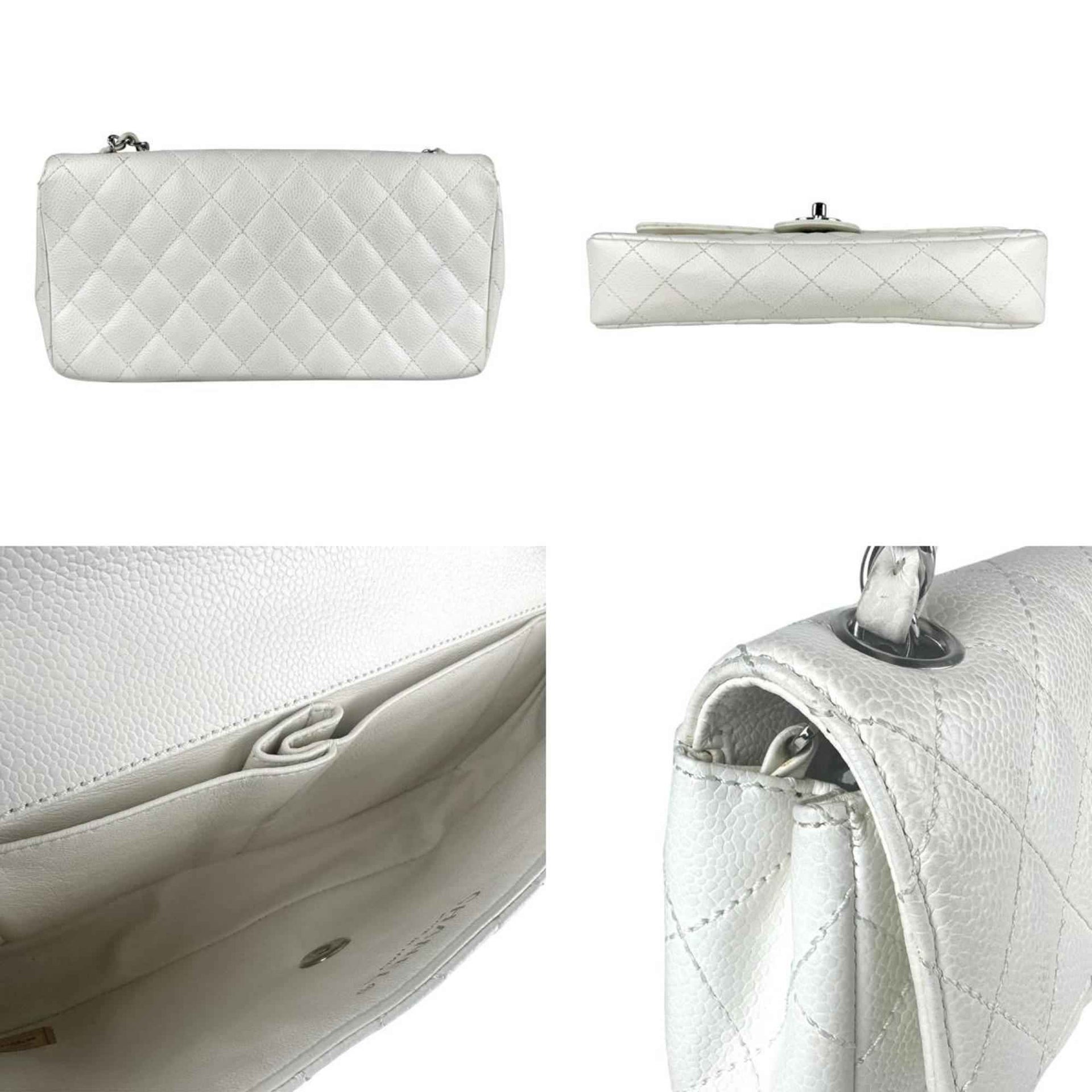 CHANEL Matelasse Shoulder Bag in Caviar Leather with Metallic, Off-White and Silver, Women\'s, z7173