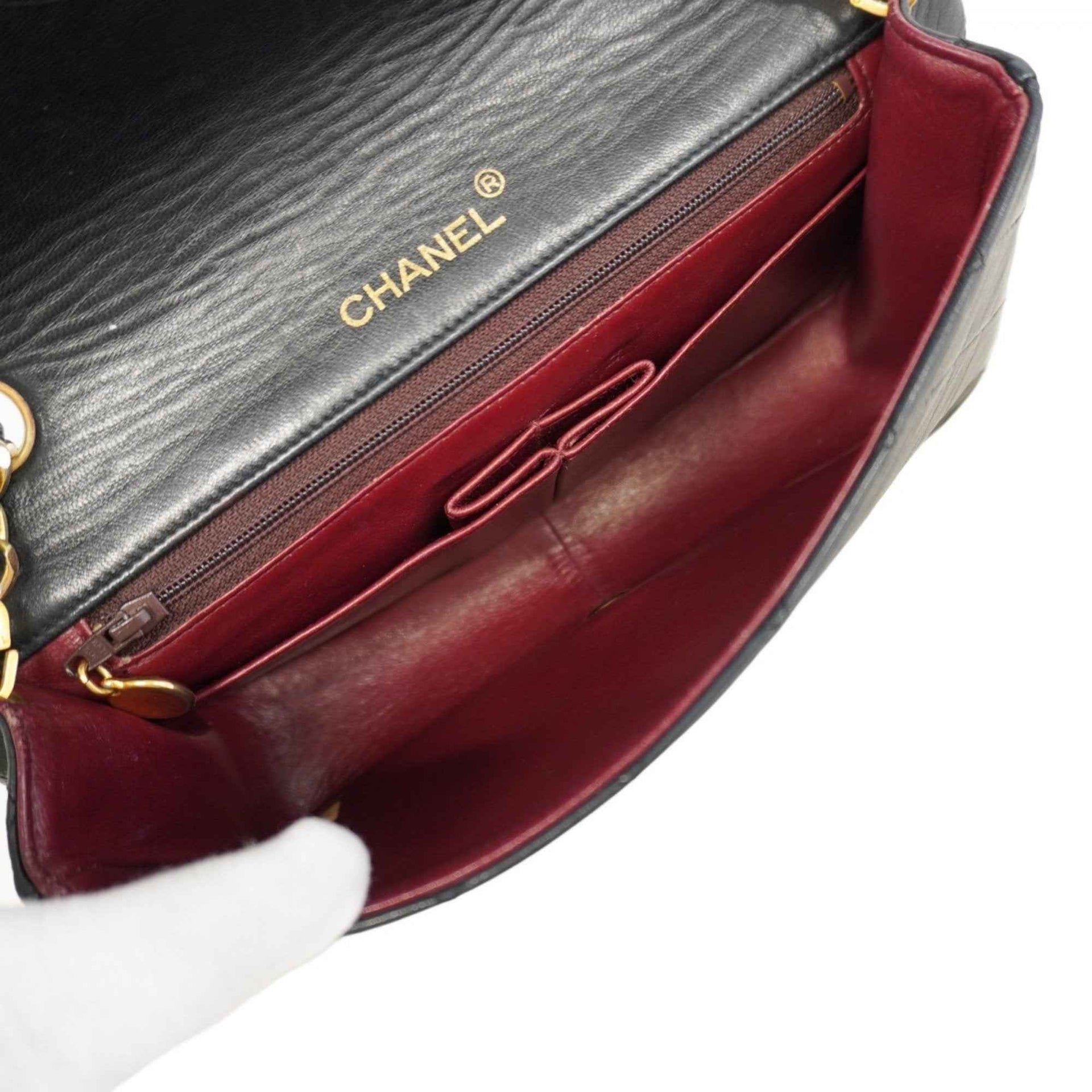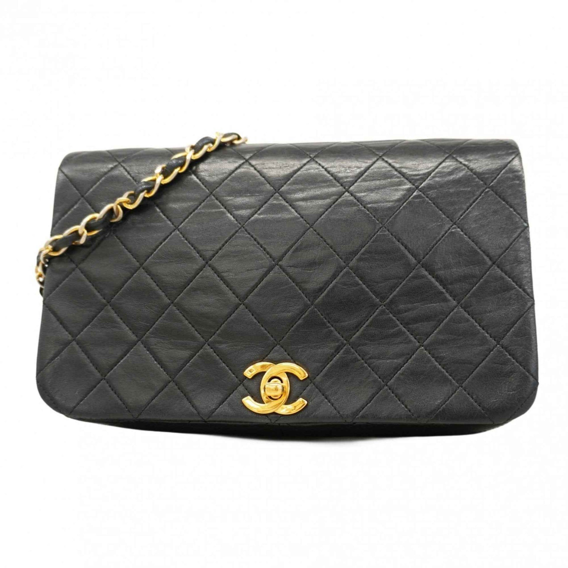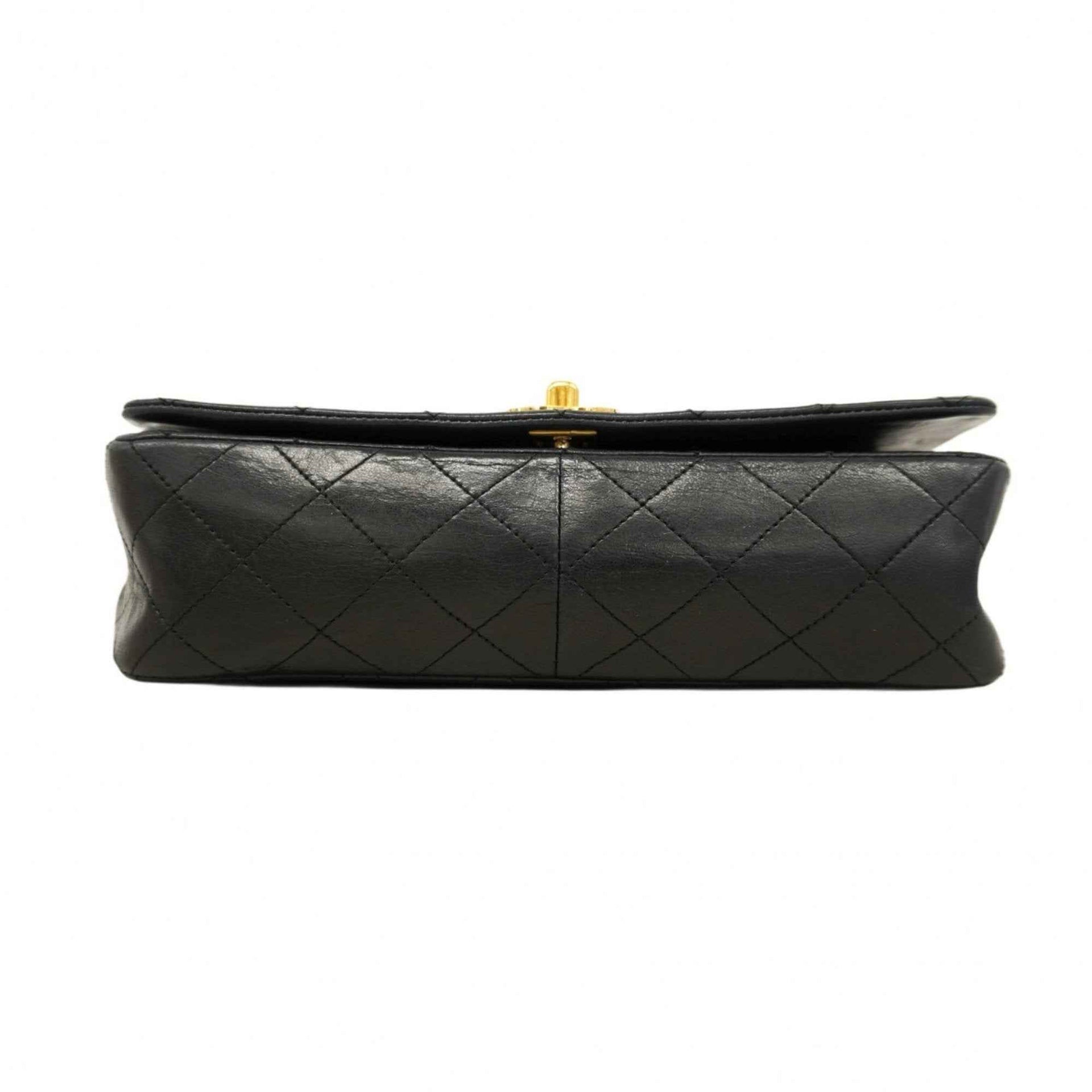 Chanel Matelasse Shoulder Bag with Chain Bag, Lambskin, Black, Women\'s