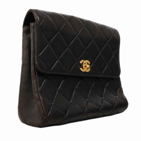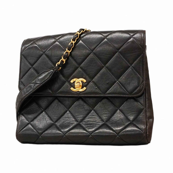 Chanel Matelasse Shoulder Bag with Chain Bag, Lambskin, Black, Women\'s