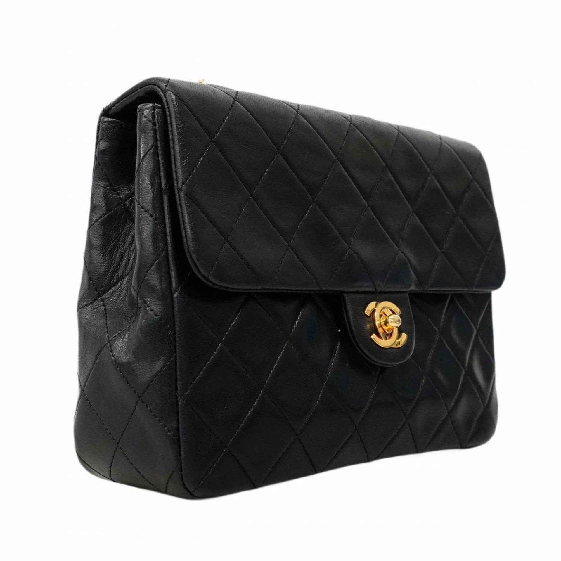 Chanel Matelasse Shoulder Bag with Chain Bag, Lambskin, Black, Women\'s